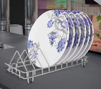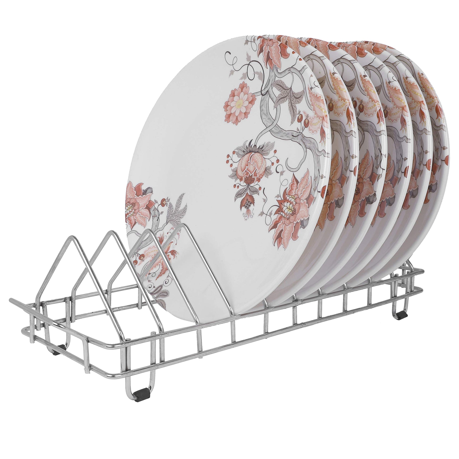 Plantex Stainless Steel Dish Rack| Plate Fixer| Plate Holder| Plate Rack Stand| Plate Organizer for Kitchen Cabinet - Chrome(for 10 Plates)