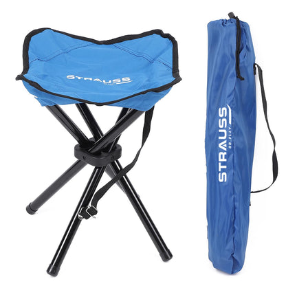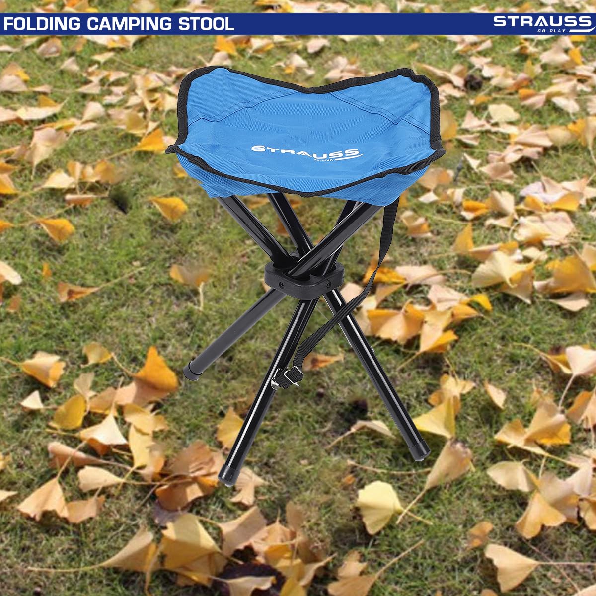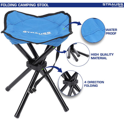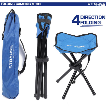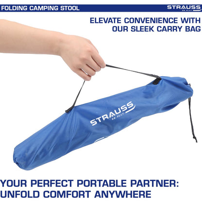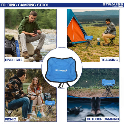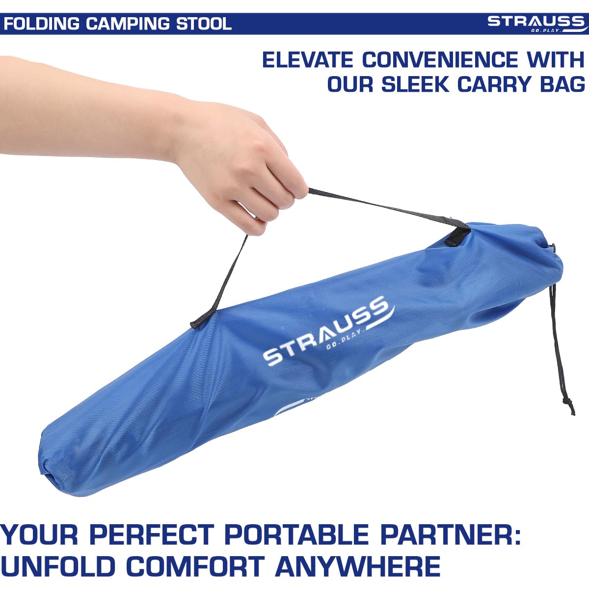 STRAUSS Folding Camping Chair |Portable & Foldable Stool for Camping, Fishing, Gardening, and Beach| 4-Leg Chair|Camping Accessories |Compact Outdoor Seat for Travel,Picnics,Outdoor Activities,(Blue)