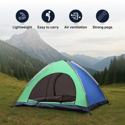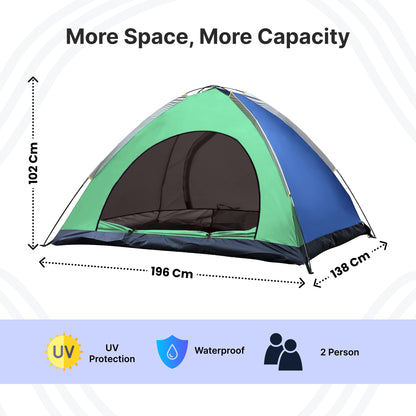 STRAUSS Portable Tent for Camping | Ideal for 2 Persons | Easy Setup for Picnic, Travel, Hiking, Trekking, Outdoor Camping | Waterproof and Windproof Tent | Superior Air Ventilation, Multicolor