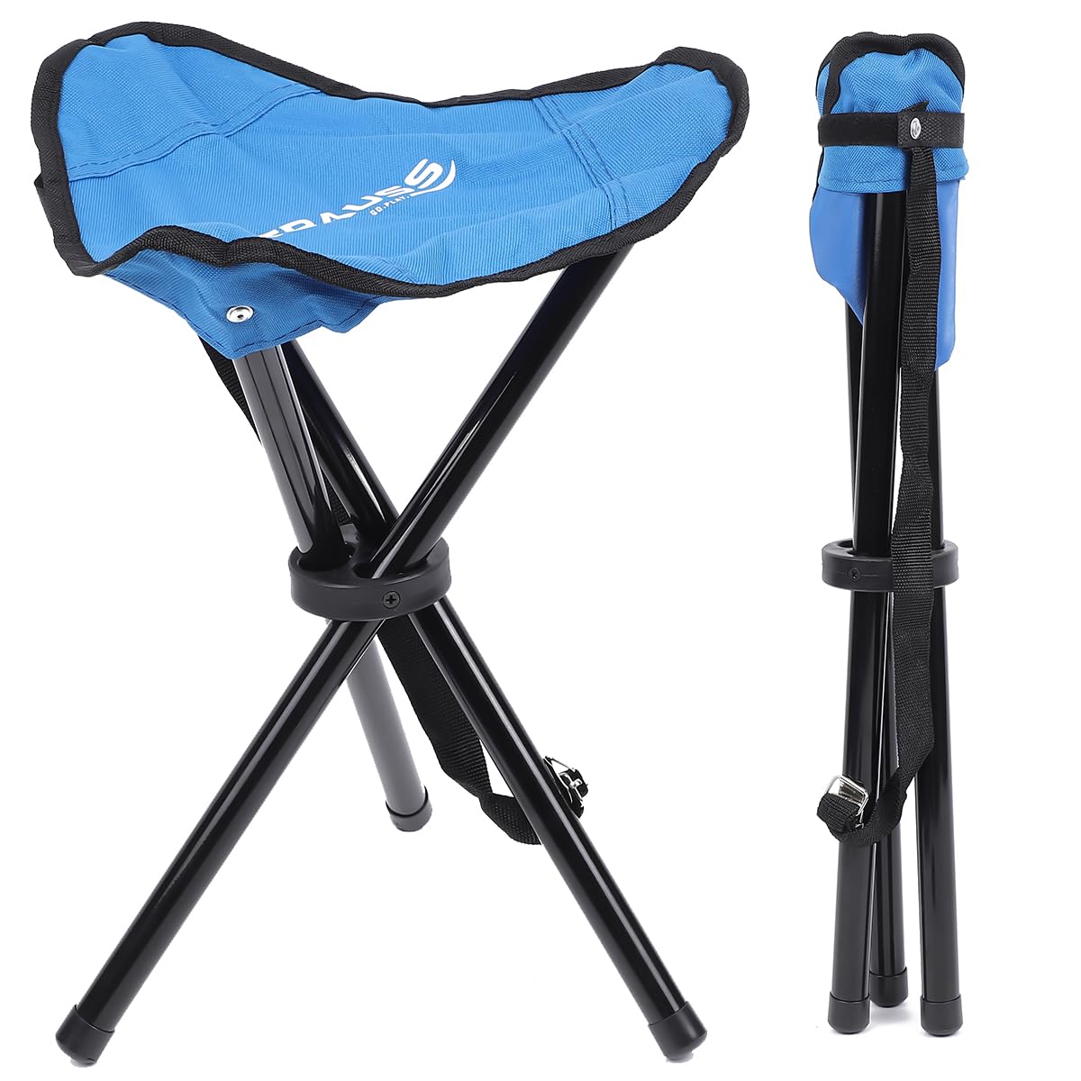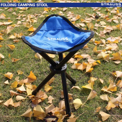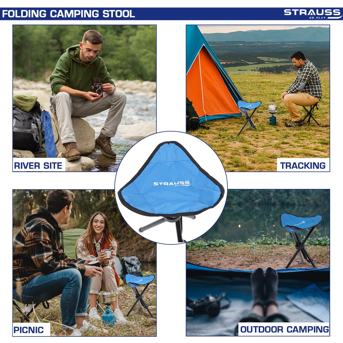 STRAUSS Folding Camping Chair |Portable & Foldable Stool for Camping, Fishing, Gardening, and Beach| 3-Leg Chair|Camping Accessories |Compact Outdoor Seat for Travel,Picnic,Outdoor,Blue,(32X32X42 cm)