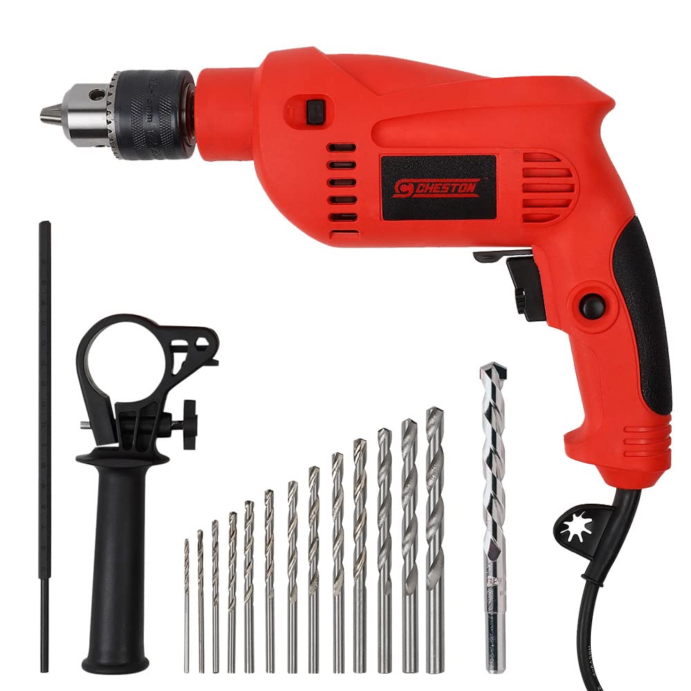• 13MM CHUCK & DRILL BITS: Comes with a 13mm chuck and an assortment of 13 HSS drill bits plus a wall bit, great for various tasks.