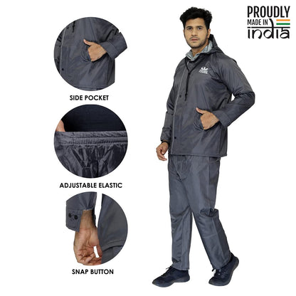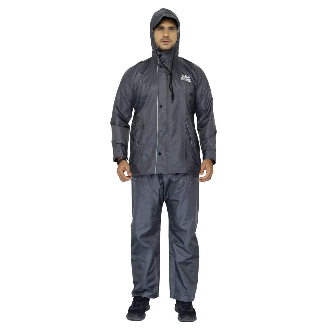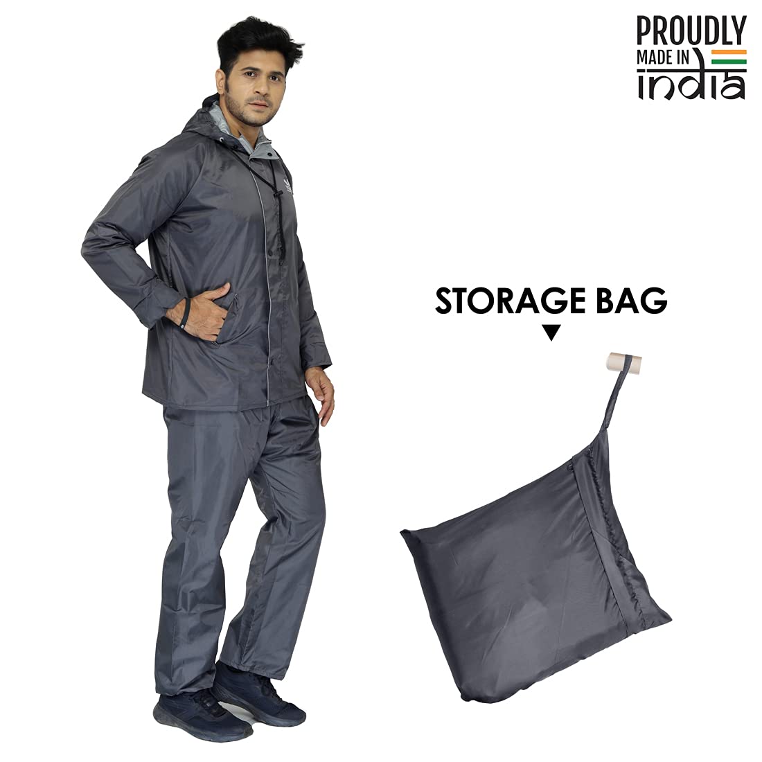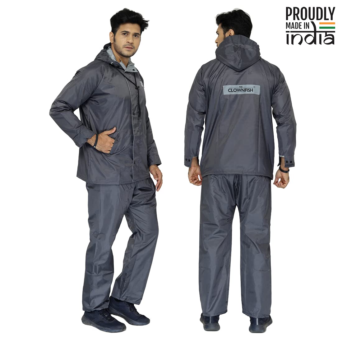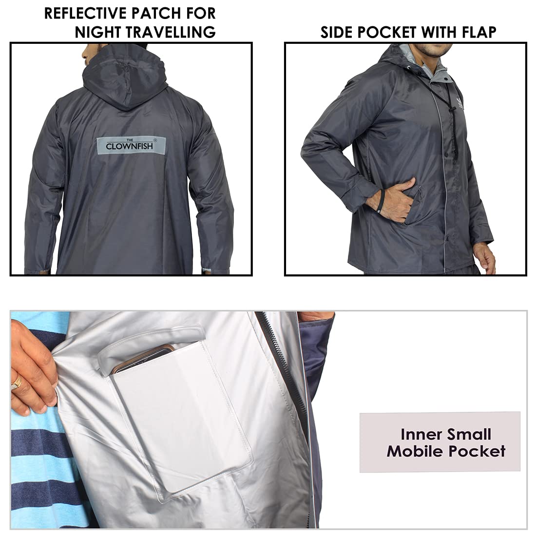 THE CLOWNFISH Rain Coat Waterproof Full Length With Pants Polyester Reversible Double Layer Rain Coat For Men Bike Rain Suit Rain Jacket Suit Inner Mobile Pocket With Storage Bag(Grey, X Large)