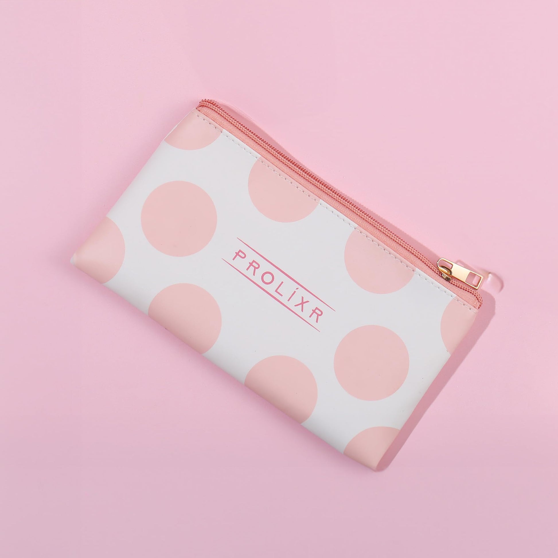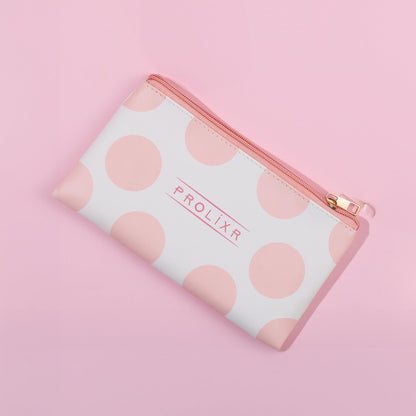 Prolixr Pink Pouch: Makeup Organizer for Travel Essentials | Compact, Waterproof | Polka Dot Design