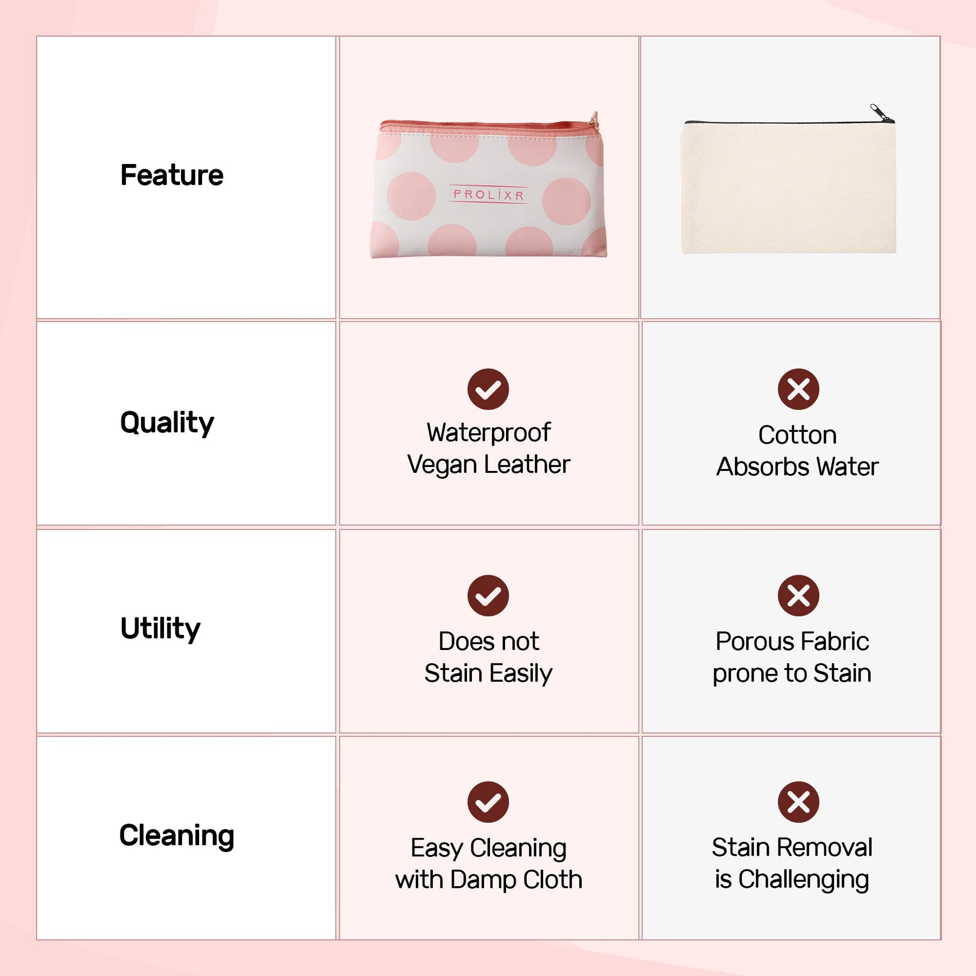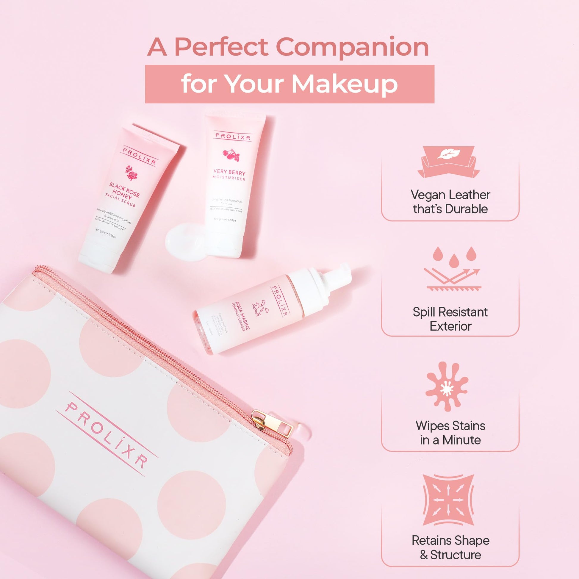 Whether you're an avid traveler or someone who enjoys organized cosmetics, the Prolixr Pink Pouch is the ultimate solution for your beauty routine. Get yours today and elevate your makeup game effortlessly!