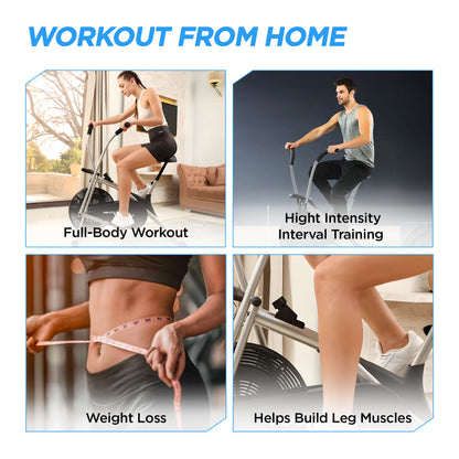 AB 100 Upright Air Bike with Moving/ Stationary Handle | Exercise Fitness Cycle | Adjustable Resistance Cushioned Seat | Max User Wt. 110 Kg | Cardio Equipment Machine | Home Gym Workout | Grey