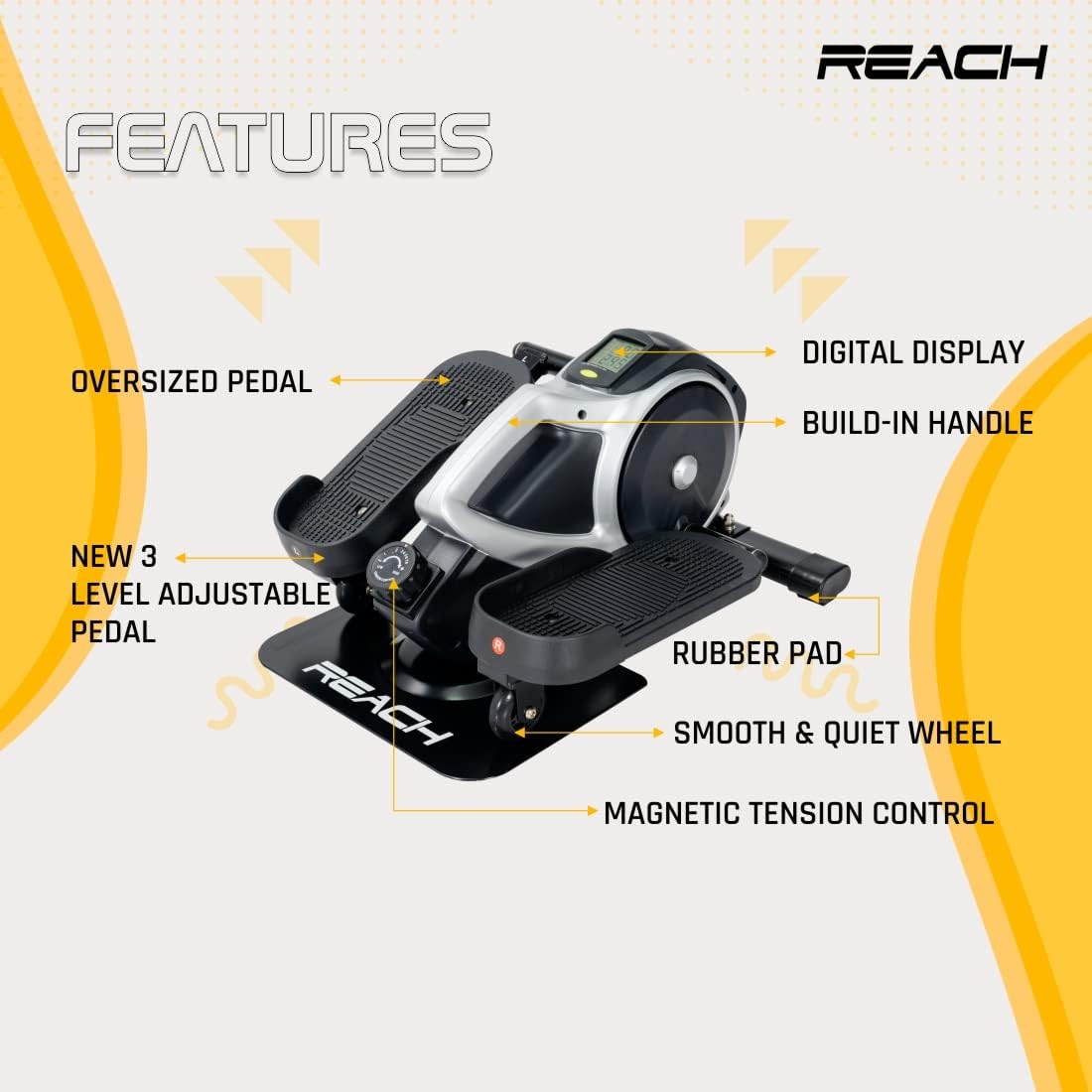 Reach Mini Elliptical Stepper Machine for Home Gym Workout with Adjustable Resistance, LCD Monitor and Non-Slip Pedal | Indoor Mini Peddler Under Desk Portable Exercise Equipment