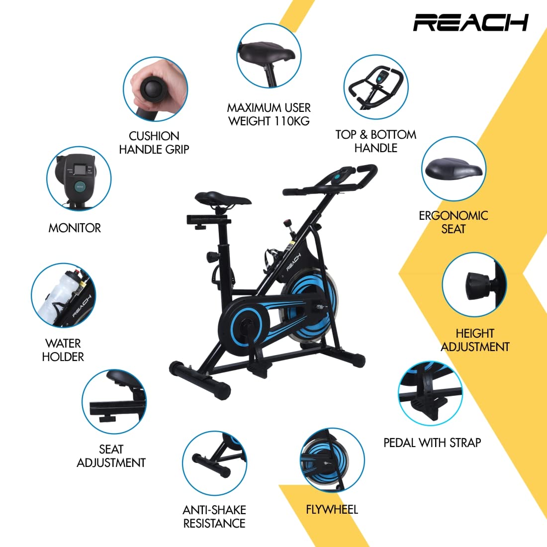 Reach Vision MII PT Spin Bike with 6.5 Kg Flywheel | Pushup Bar & Twister | Adjustable Resistance & LCD Monitor | Ideal for Tummy & Lower Body | Max User Weight 110kg