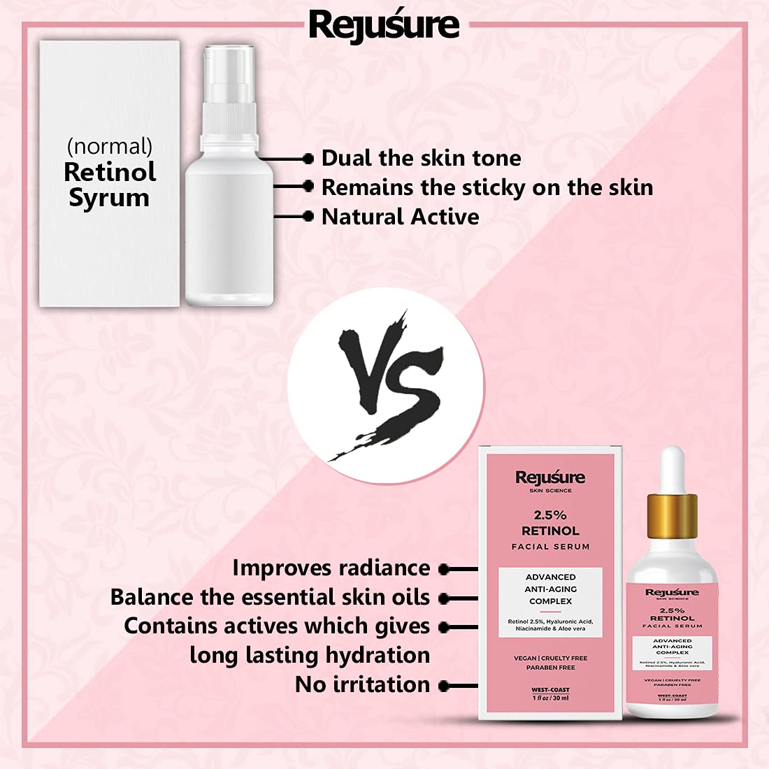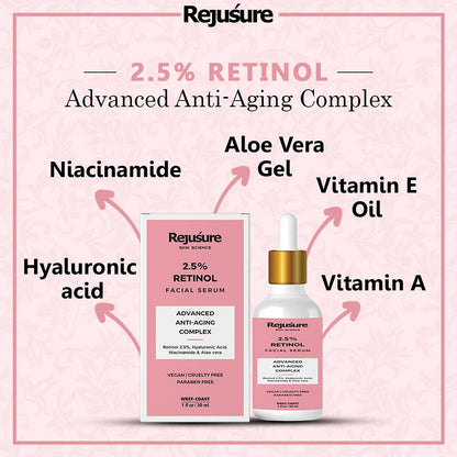 Rejusure 2.5% Retinol Anti-Aging Face Serum for Wrinkles & Fine Lines | Boost Collagen | Restoration - 30 ml