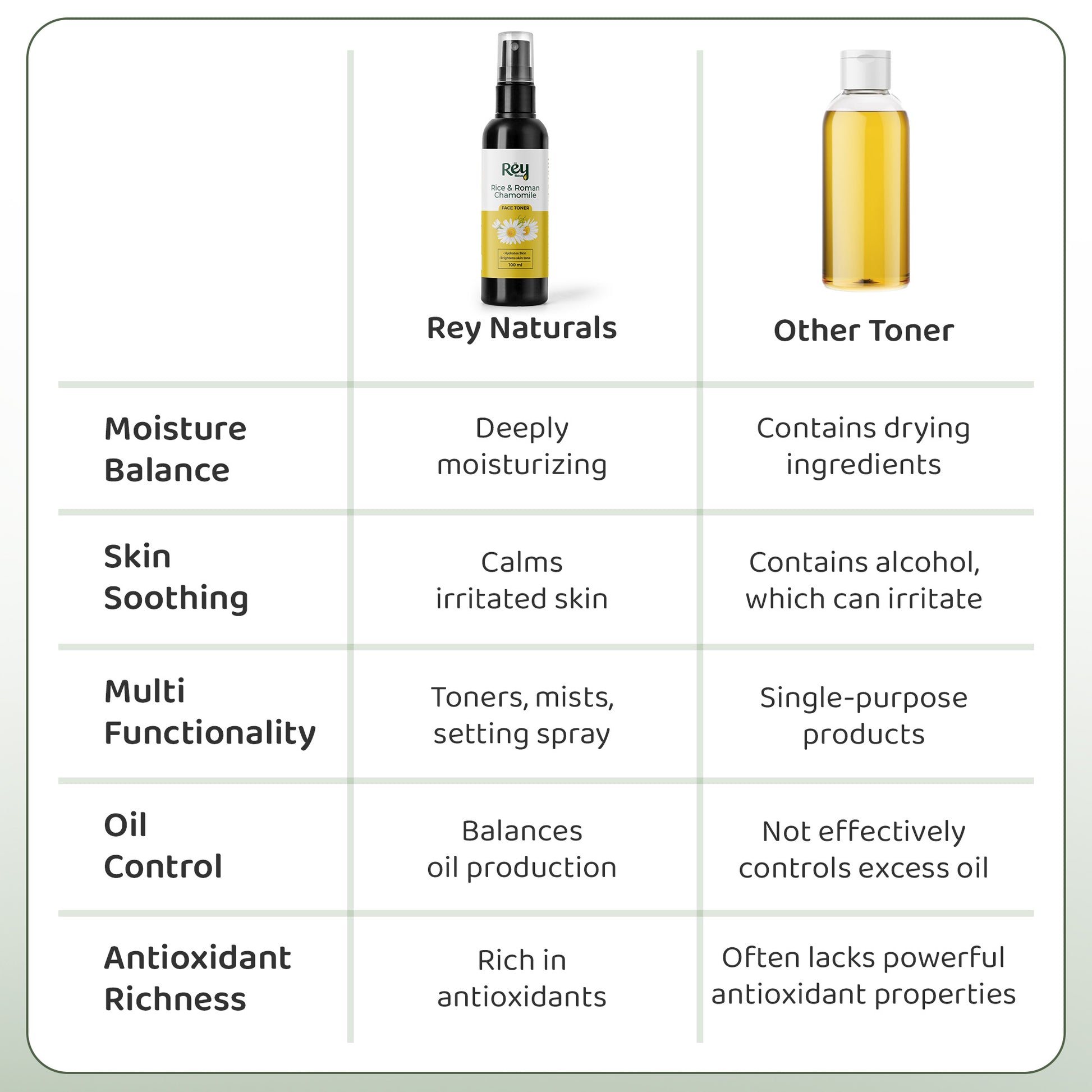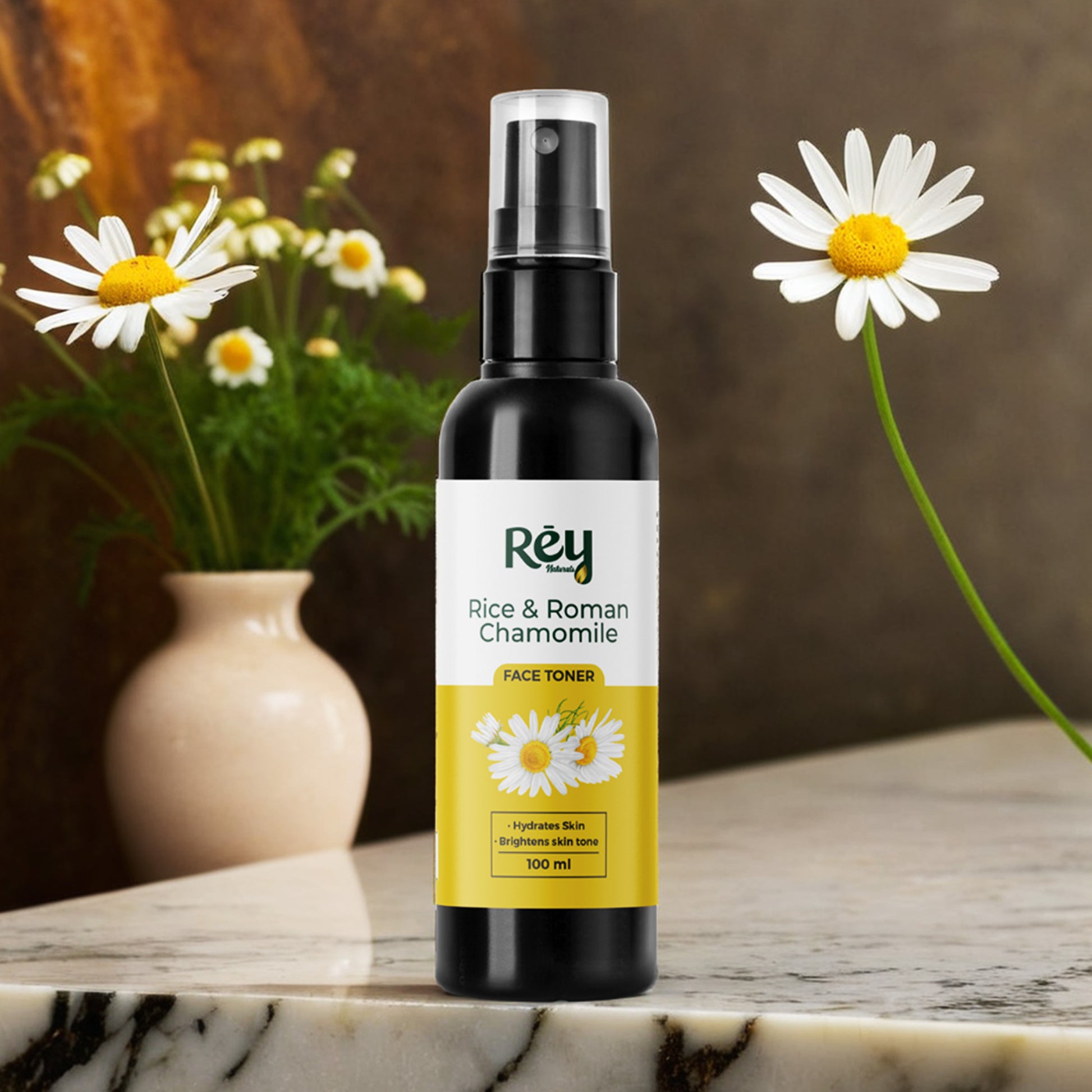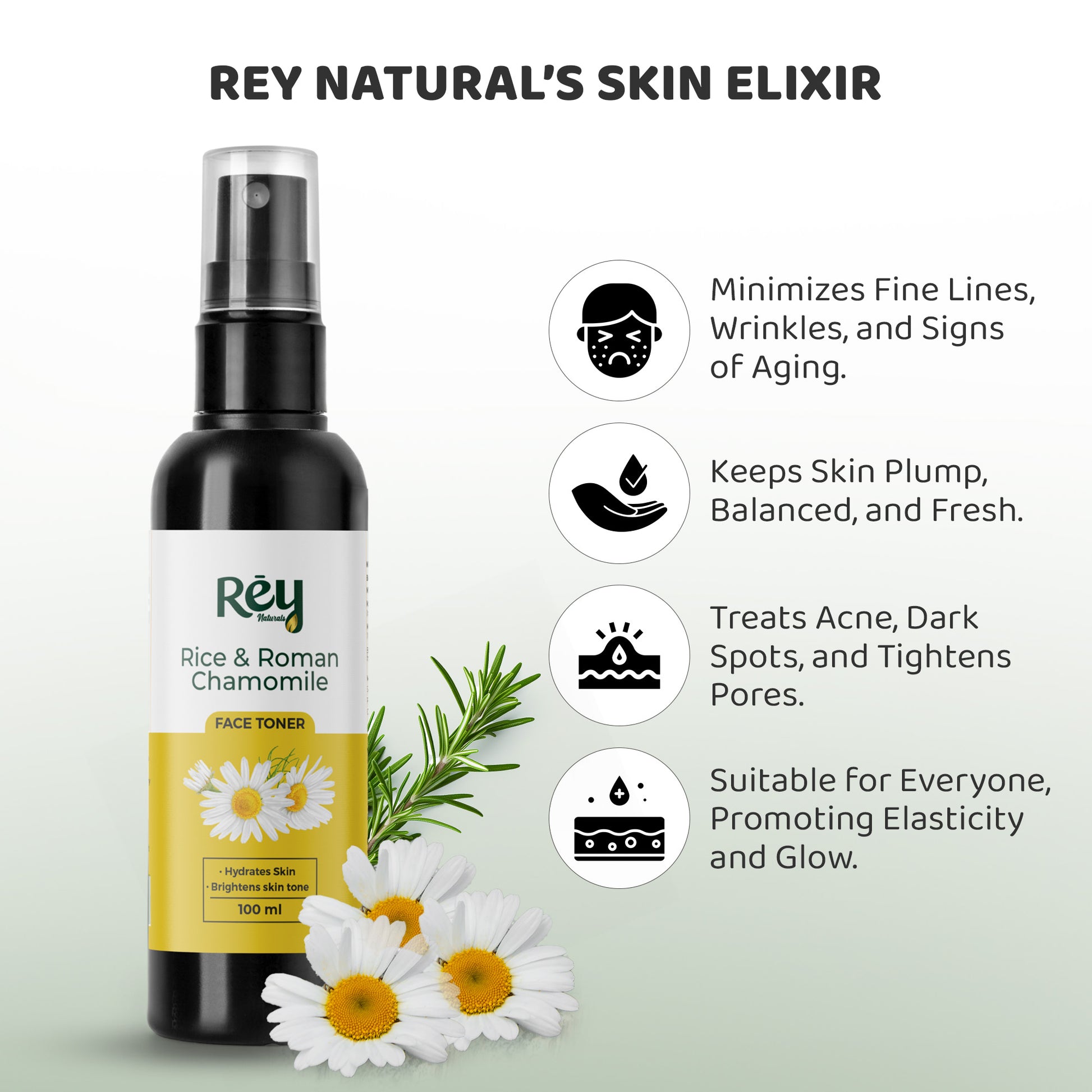 Rey Naturals Rice Toner Plus Chamomile Oil - 100ml | Rice Water Toner For Women & Men | Toner For Oily Skin Acne Prone Skin | Toner For Dry Skin Women | Hydrating Toner For Oily Skin