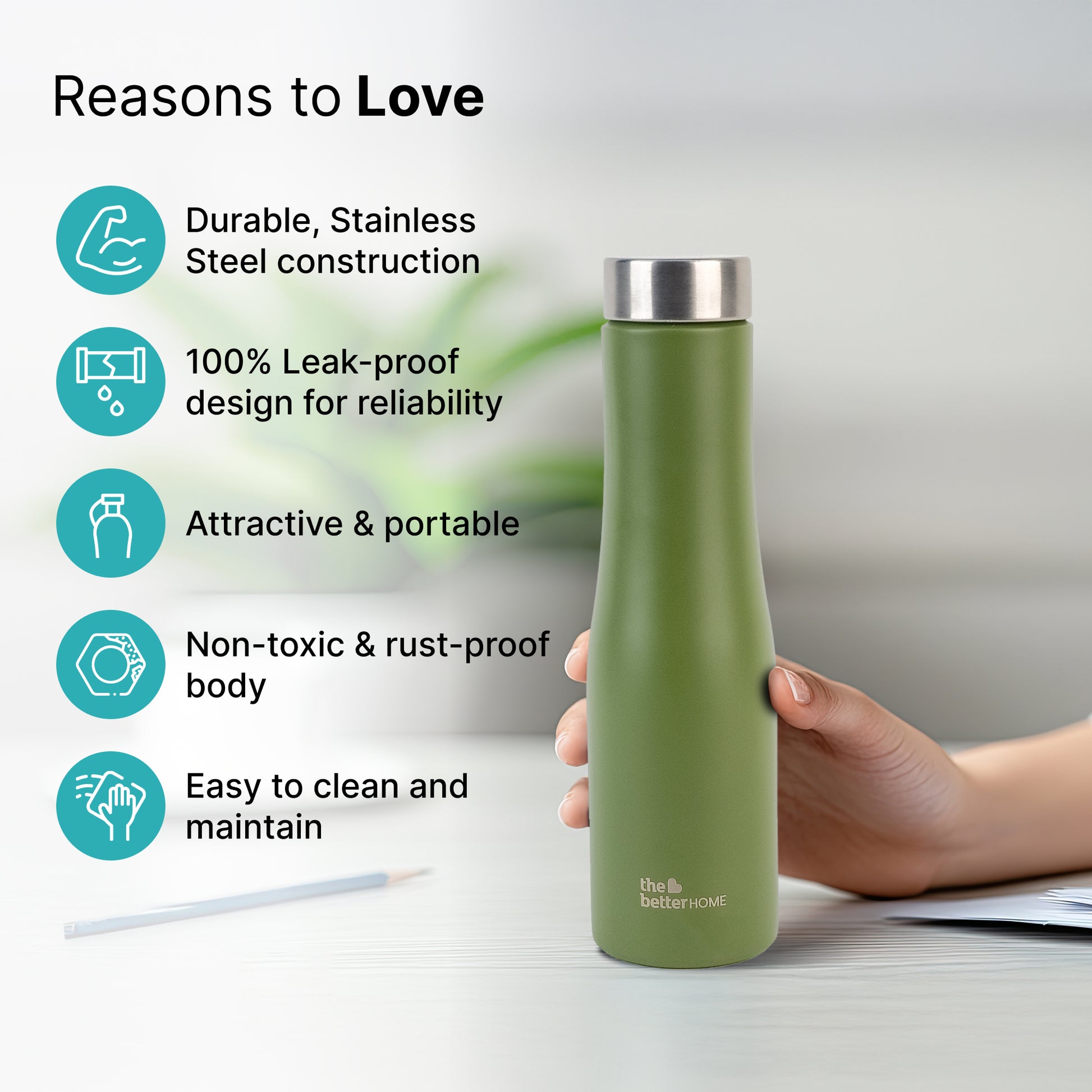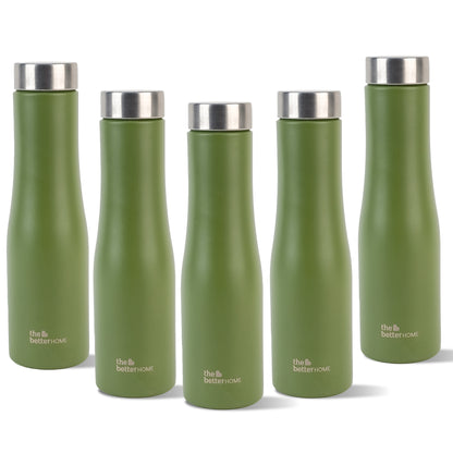 The Better Home Rivor Stainless Steel Water Bottle 1 Litre | Leak Proof, Durable & Rust Proof | Non-Toxic & BPA Free Steel Bottles| Steel Water Bottle | Military Green(Pack of 5)