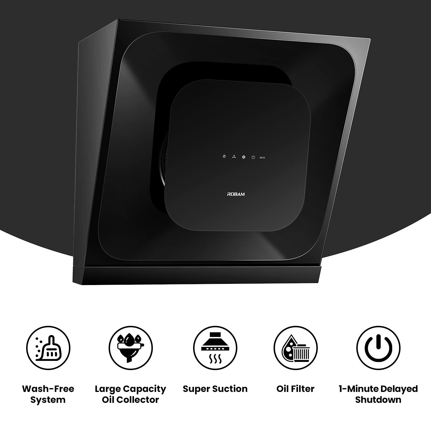 Robam 60 cm Wall Mounted Chimney - Auto Clean, Powerful Suction | 1020m³/hr | Black
