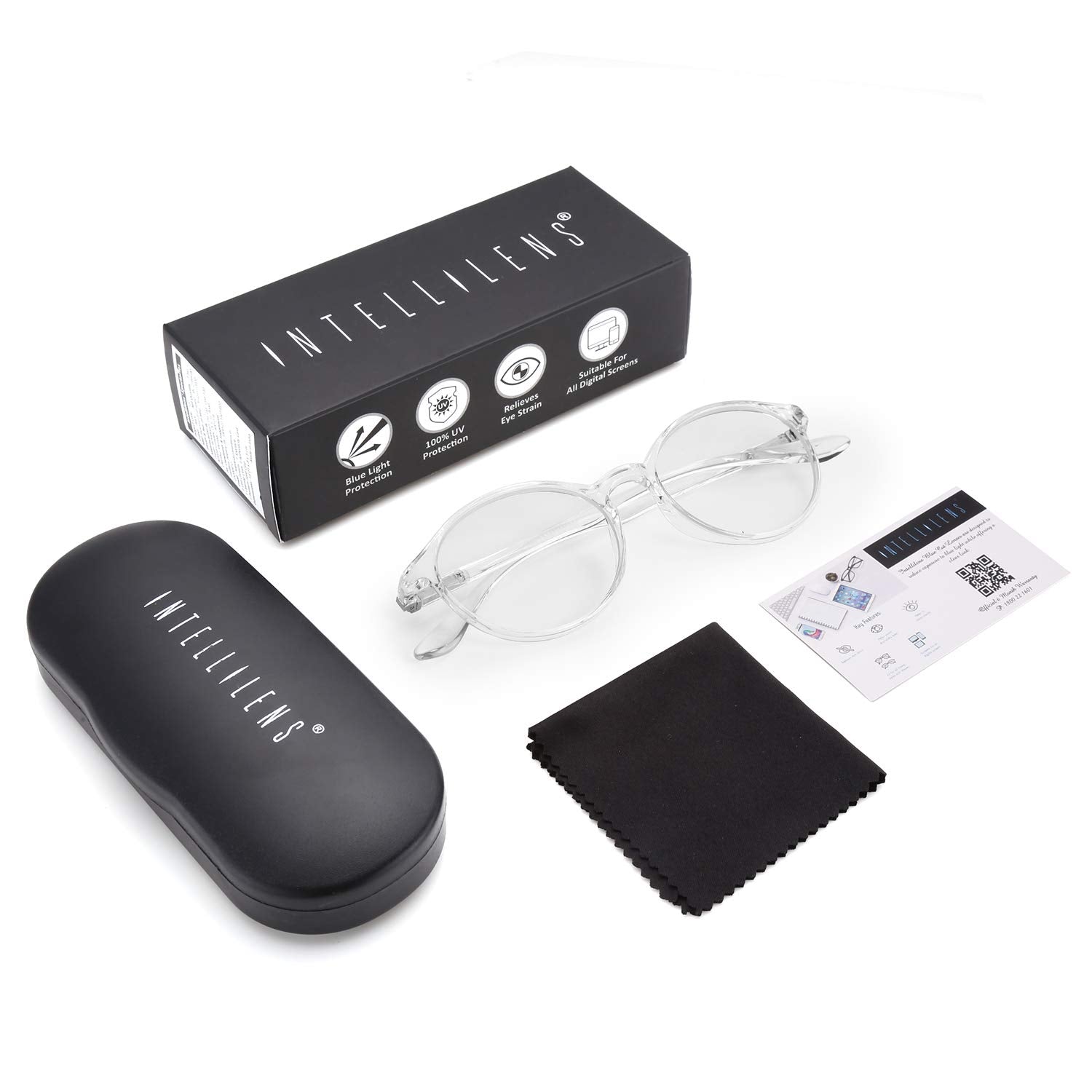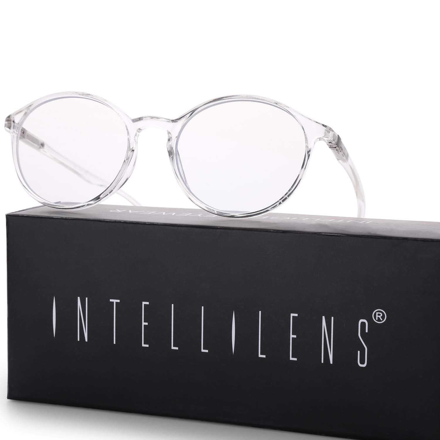 Intellilens Round Blue Cut Computer Glasses for Eye Protection | Zero Power, Anti Glare & Blue Light Filter Glasses | UV Protection Specs for Men & Women | TR90 Frames & CR39 Blue Cut Lens