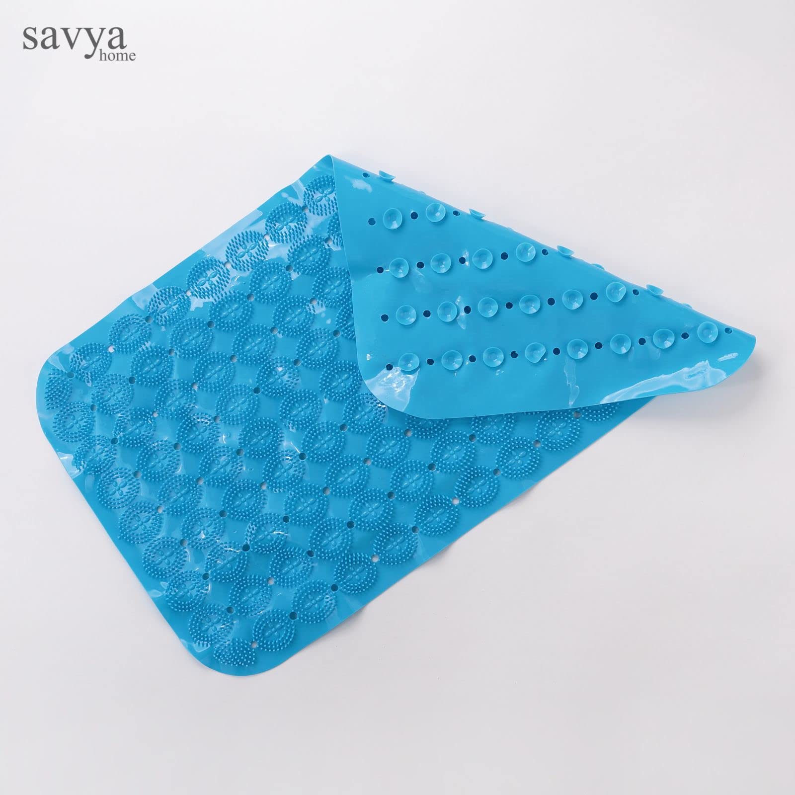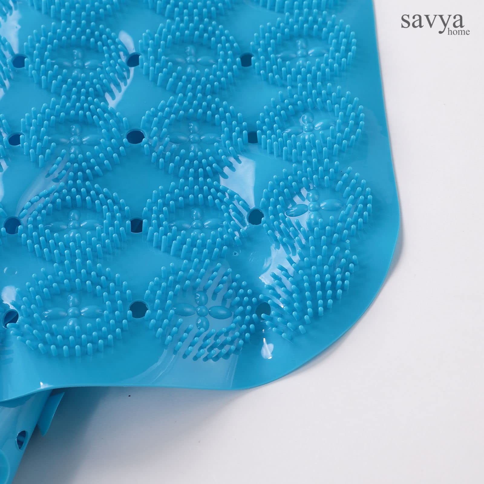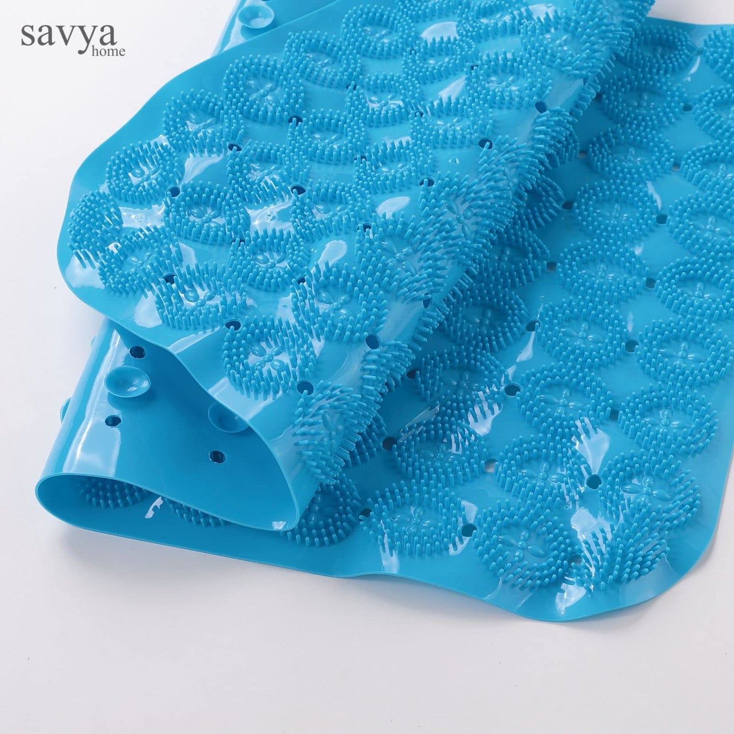 Savya Home Anti Skid Bath Mat for Bathroom, Mat for Kitchen, Mat for Shower area, Bathtub Mats| PVC Bath Mat with Suction Cup, Machine Washable Floor Mat (67x37 cm) (Blue)