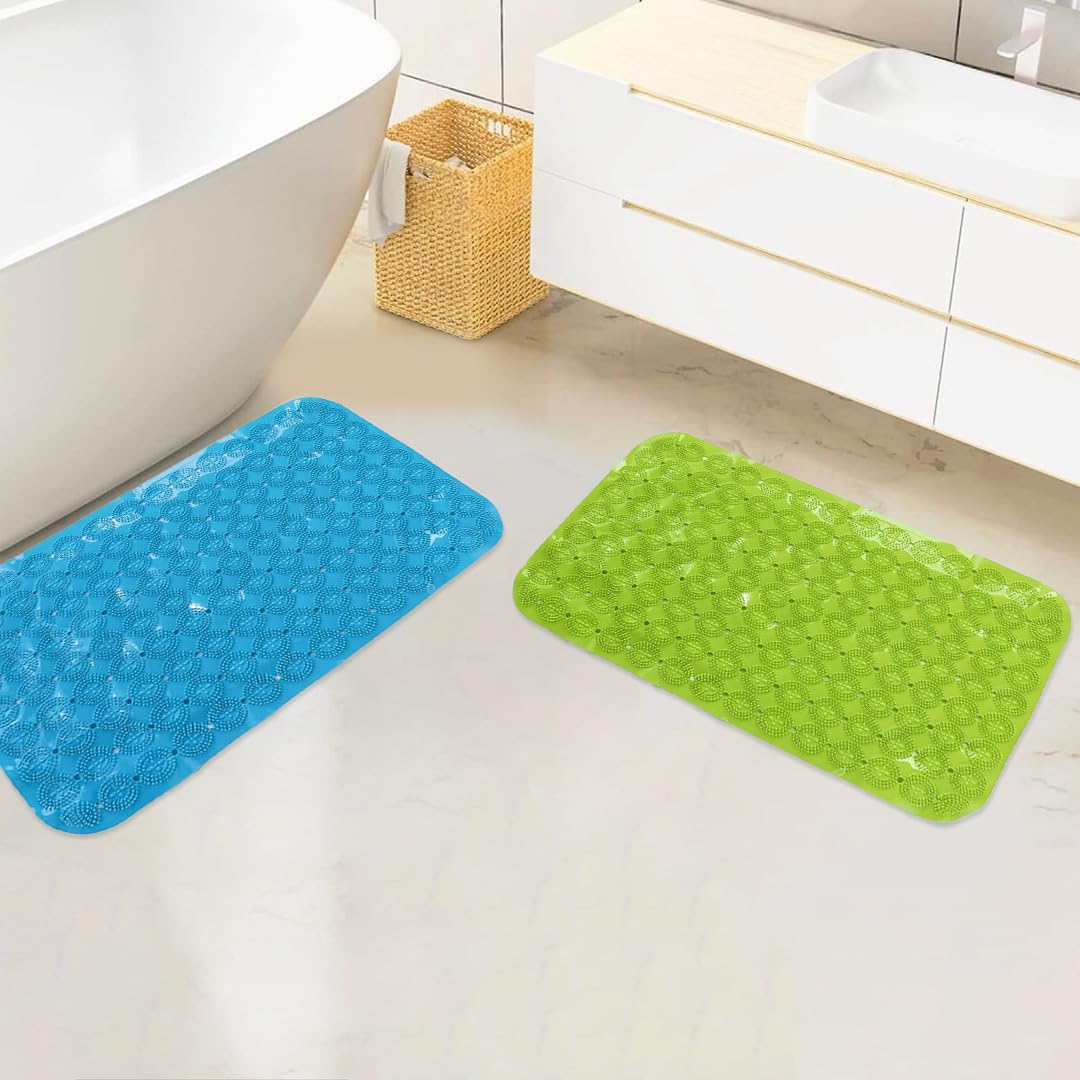 Combo: Anti Skid Bath Mat - PVC, Suction Cup, Machine Washable | 67x37 cm | Blue & Green