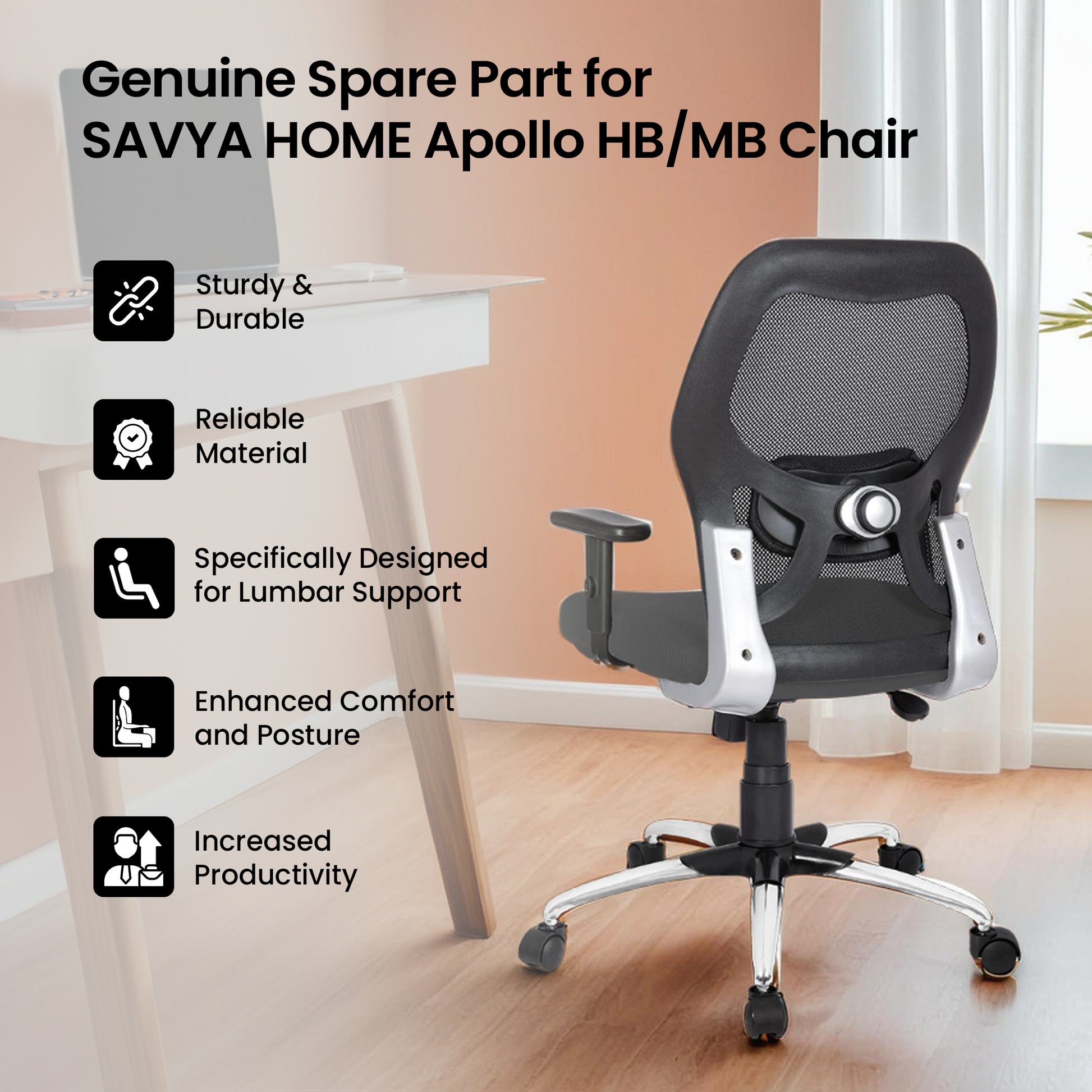 SAVYA HOME Apollo Chair - Ergonomic Lumbar Support | Easy to Install | 34 cm | Black
