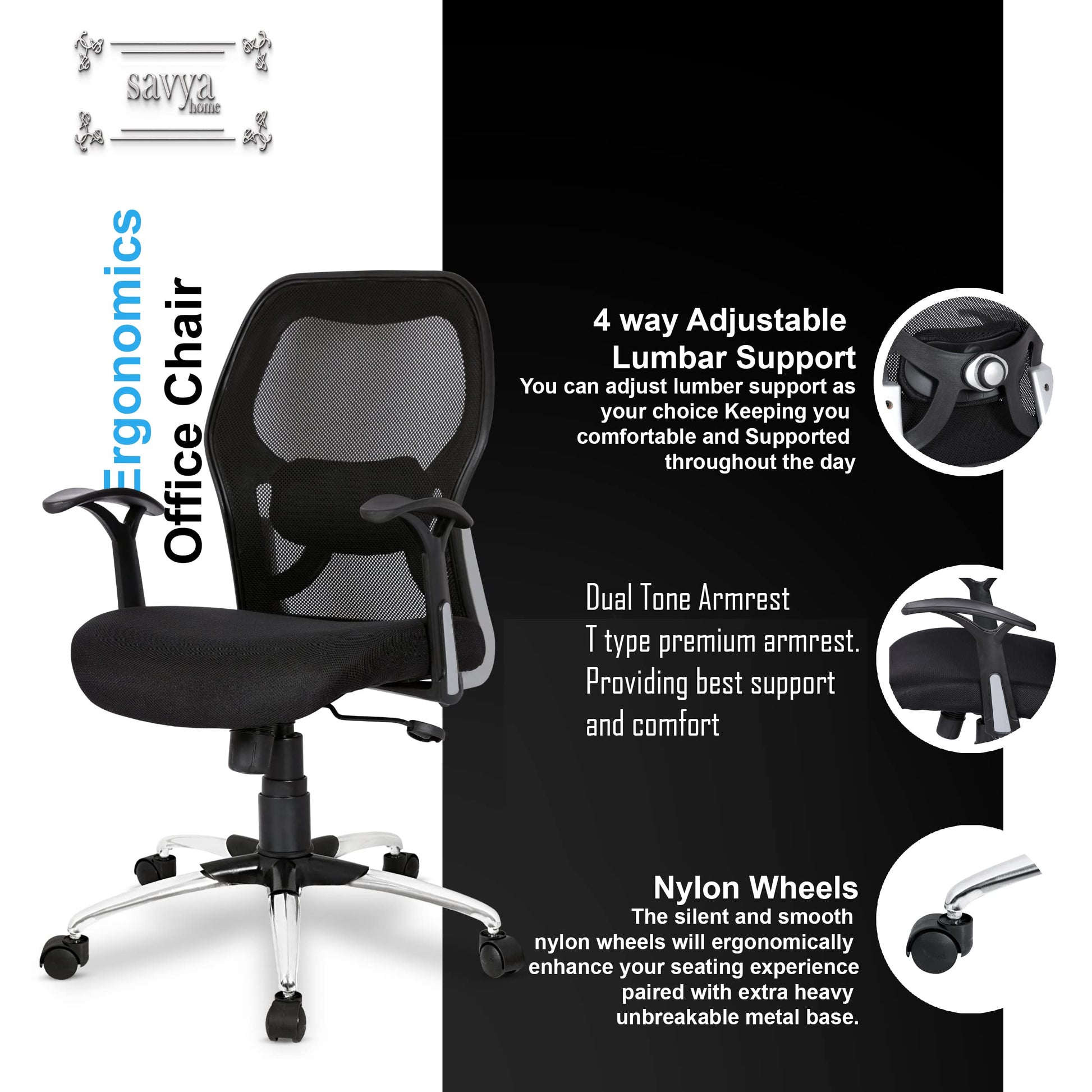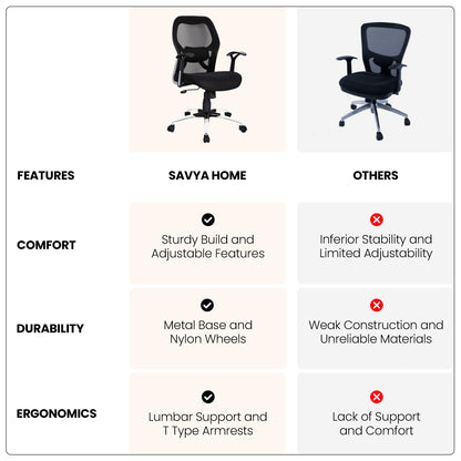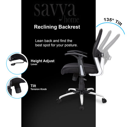SAVYA HOME Apollo MId Back Ergonomic Office Chair with Tilt Lock Mechanism (2D Lumbar Support & Contoured Meshback, Black, 1 Piece) For Any Installation Queries, Please Reach Out To Us On Our Customer Care Number: +919811001822.