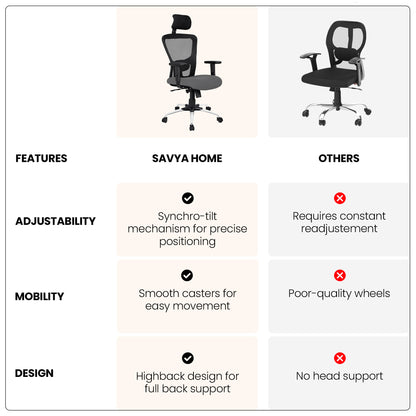 Whether you're a student attending online classes, a professional in a corporate office, or someone gaming at home, the SAVYA HOME Beatle Chair strikes the perfect balance between comfort and support, catering to both adults and students alike. Experience productivity like never before!