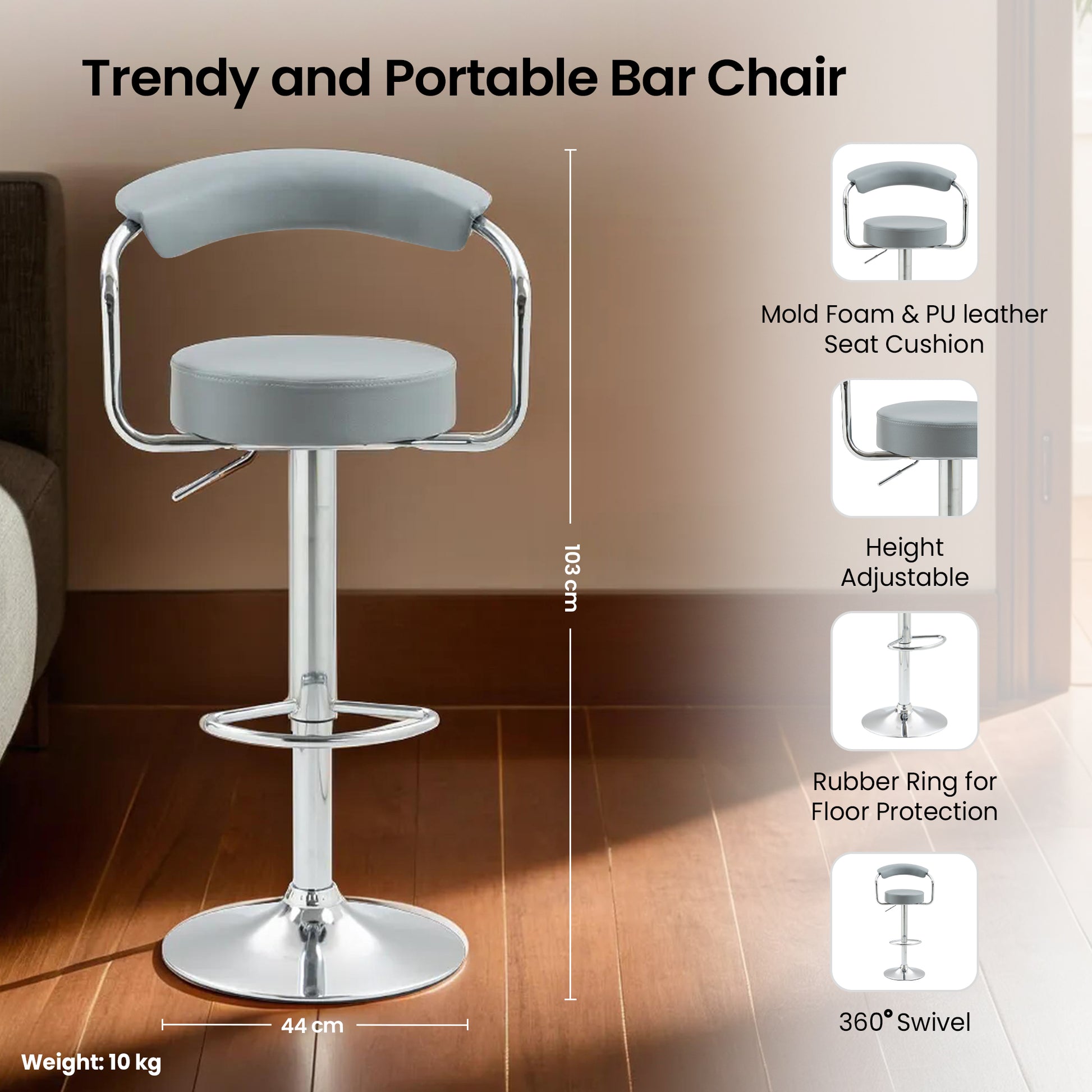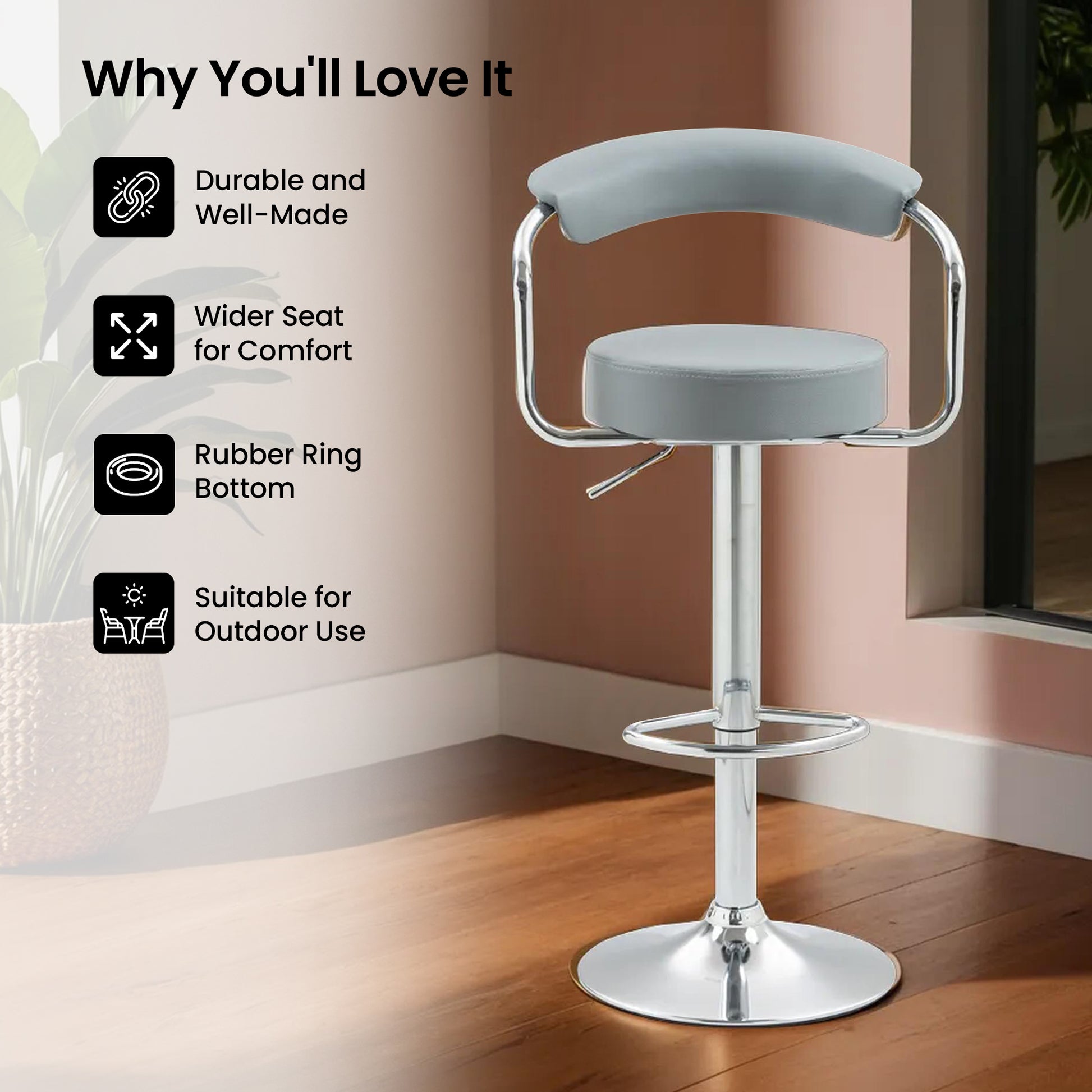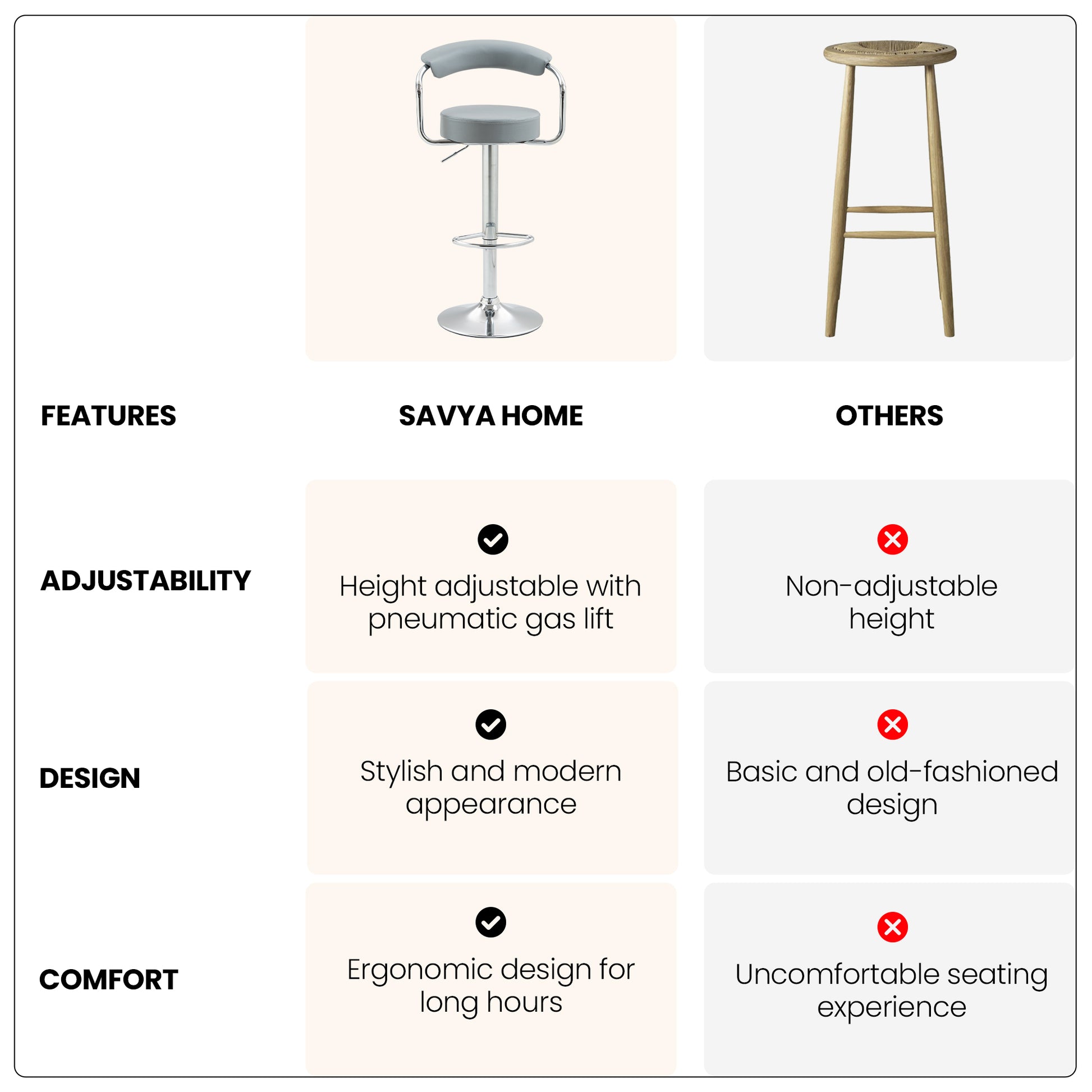 SAVYA HOME Curvy Martin Bar Stool - Height Adjustable, 360° Swivel | Perfect for Kitchen, Bar, Living Room | Grey