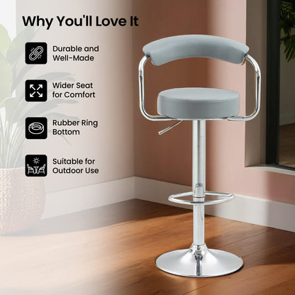 Curvy Martin Bar Stool - Height Adjustable, 360° Swivel | Perfect for Kitchen, Bar, Living Room | Grey