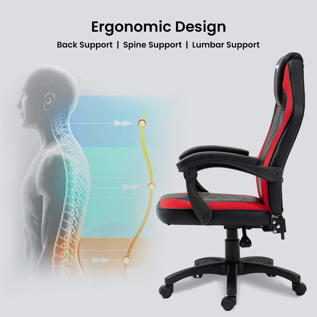 Hacker Multi-Functional Ergonomic Gaming/Computer/Home/Office Chair, Premium PVC Fabric Chair with Built-in Lumbar support (Blue)| Apex Crusader Gaming Series (Red)