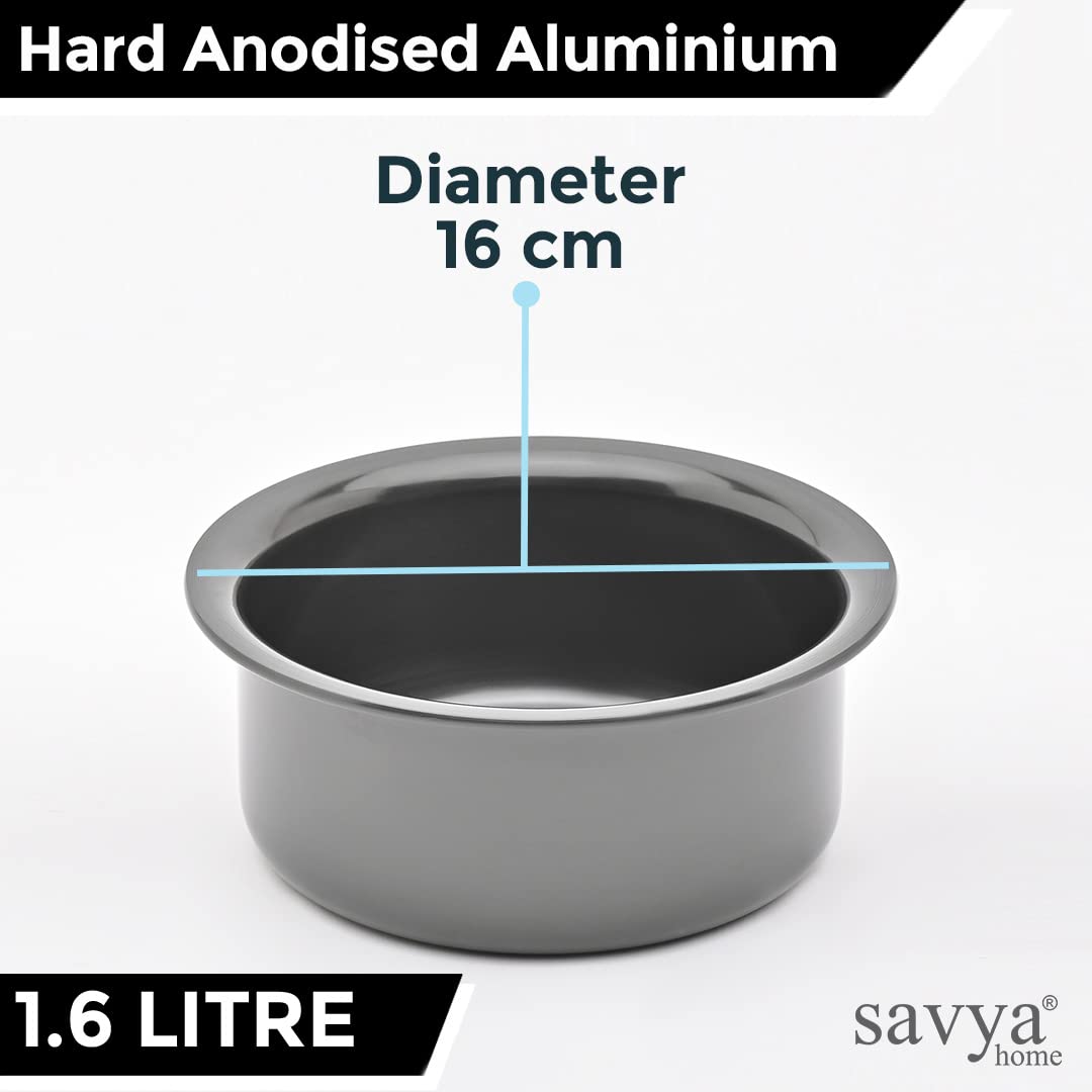 Savya Home 1.6L Hard Anodized Tope - Non-Stick Aluminium | Silver
