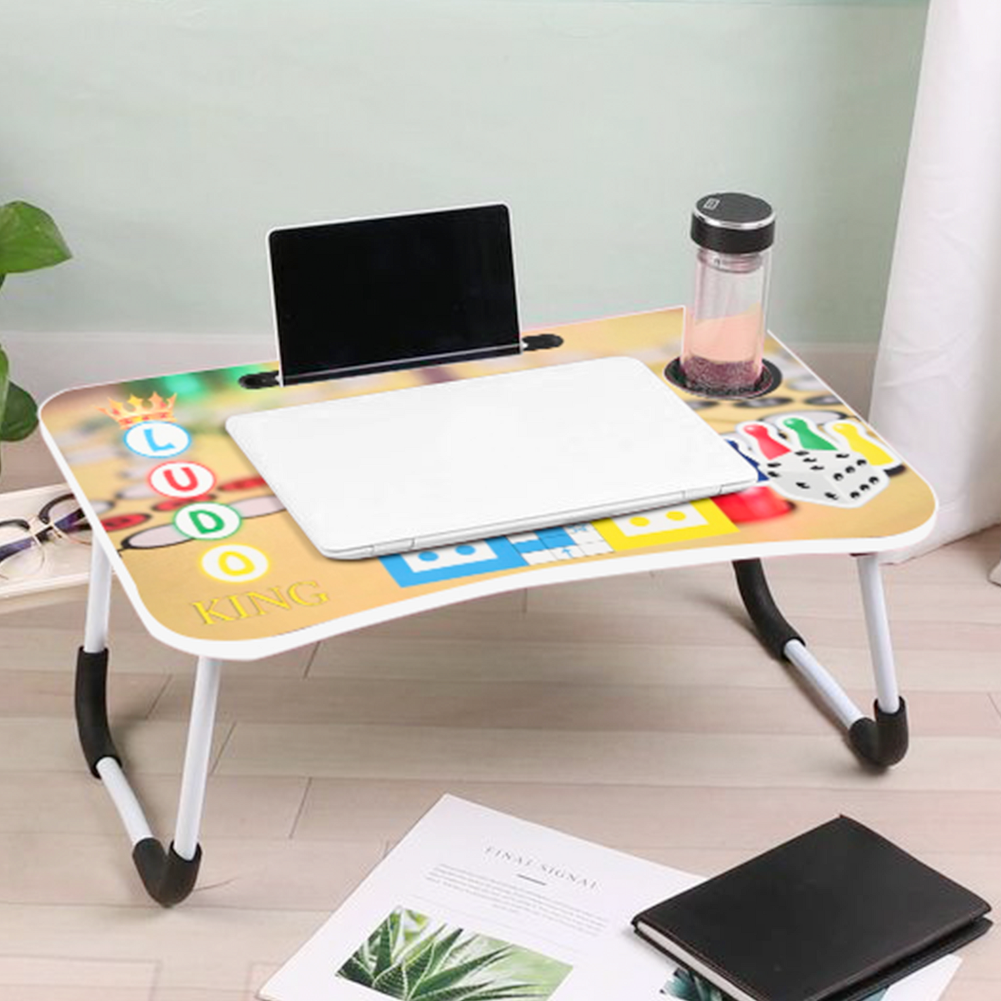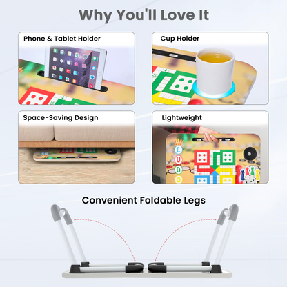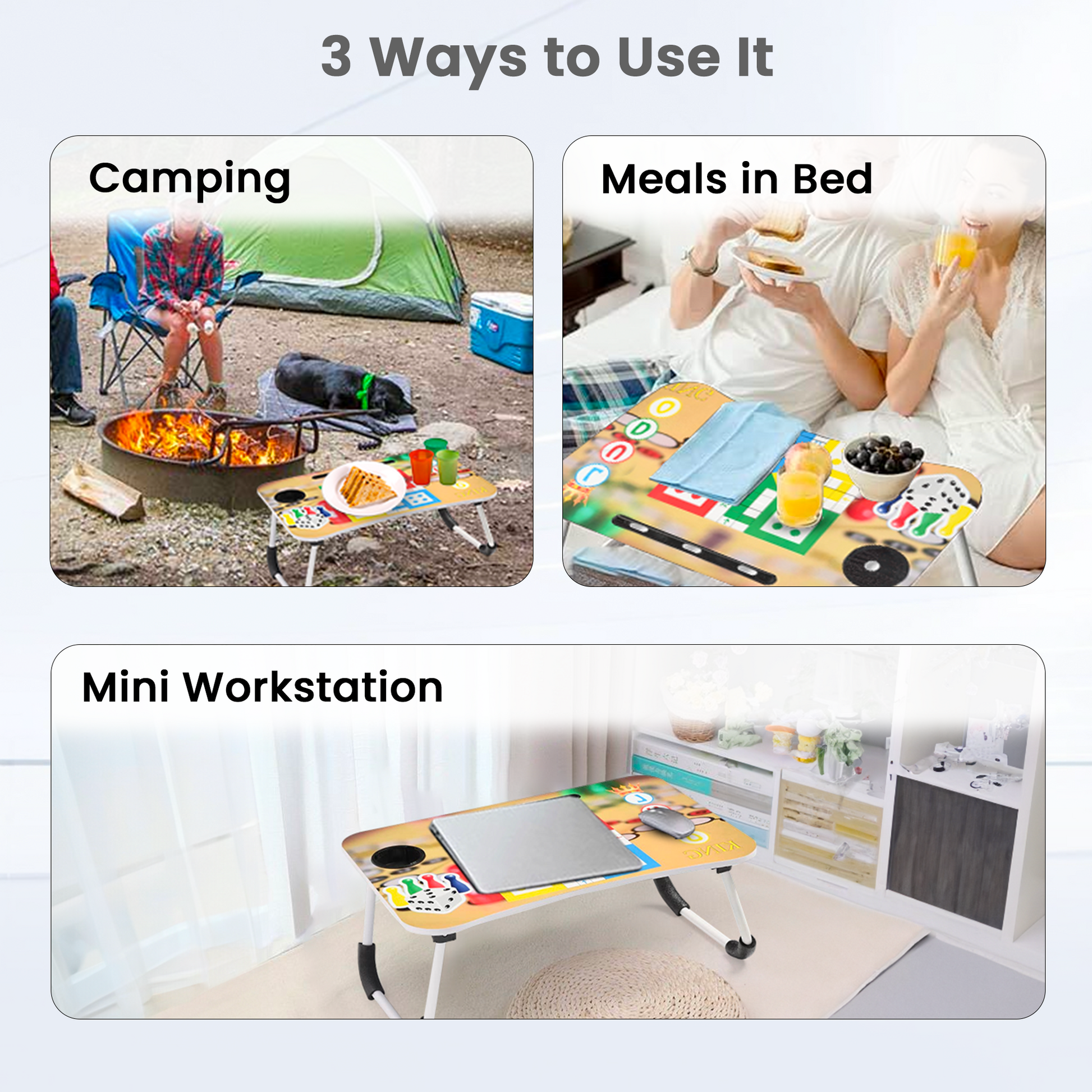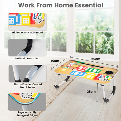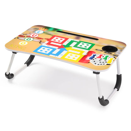 Multi-Purpose Portable Laptop Table, Foldable Wooden Desk For Bed Tray, Laptop Table, Study Table With Mug Holder, Ergonomic, Non-Slip Legs, Breakfast In Bed Table, Ludo, 28 Centimeters