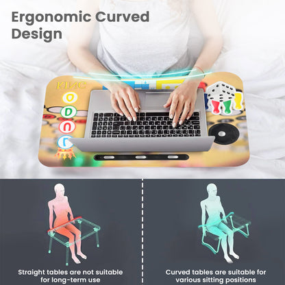 • Ergonomic Comfort: Featuring a curved desktop edge and a non-slip sponge design, this table promotes a comfortable and stable workspace.
