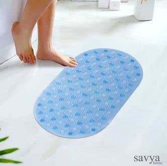 Savya Home Oval Bathroom Floor Mat PVC/Non-Slip & Soft/Light Weight Mat for Living Room, Anti Skid Mat for Bathroom Floor/Shower Mat/Multipurpose Mat (Purple) (Blue)