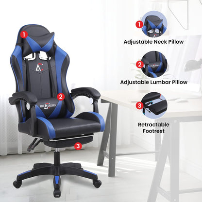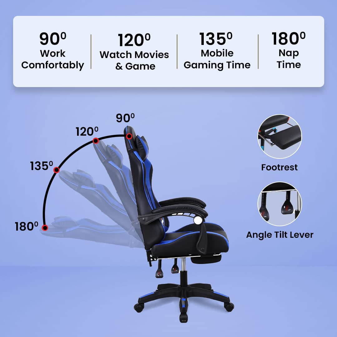 Snipe Gaming Chair with Adjustable Headrest & Lumbar Support,135°Recliner Chair|Stretchable Armrest with Footrest, Multifunctional Chair (Blue)|Apex Crusader Gaming Chair Series - Plastic