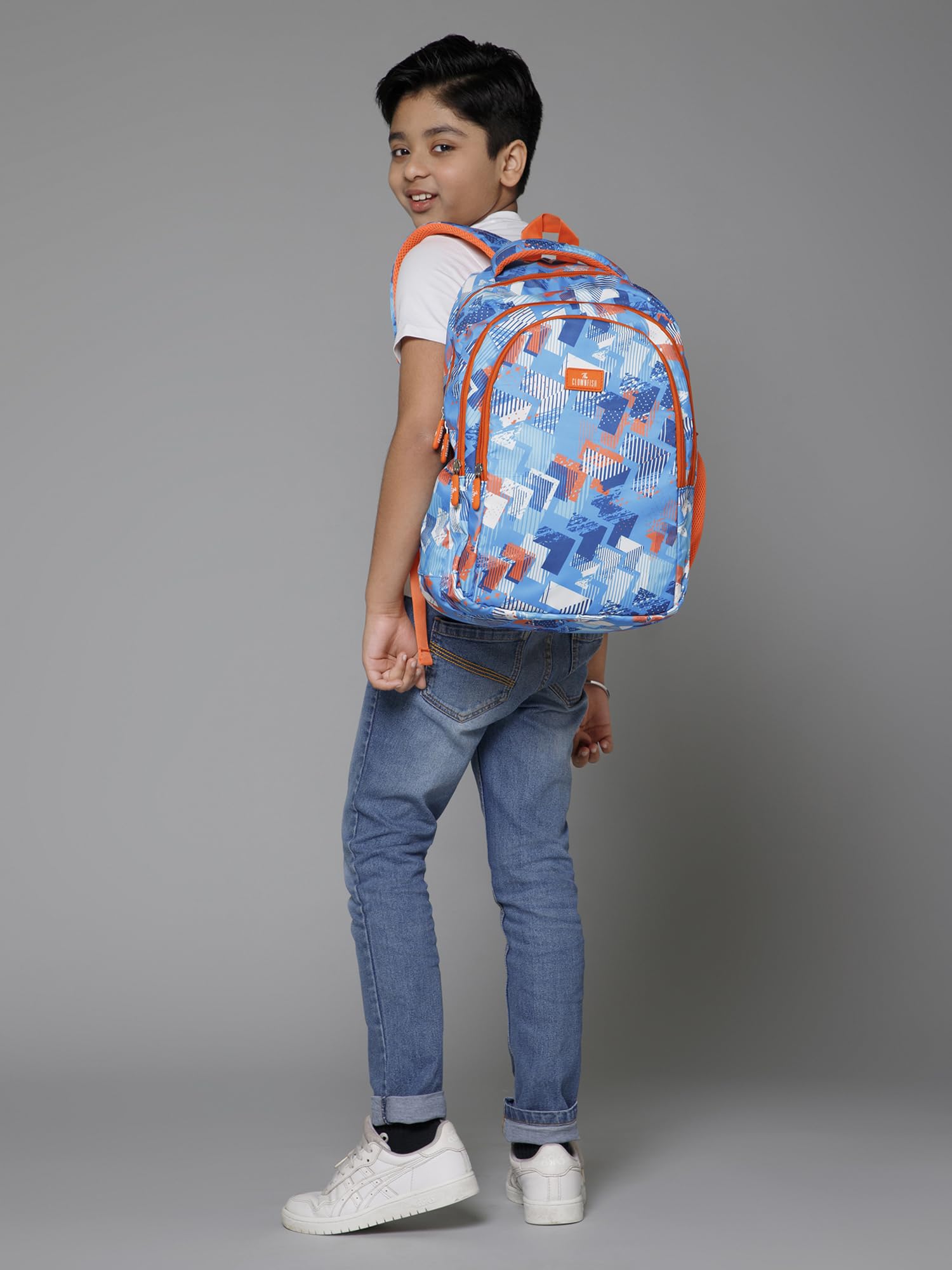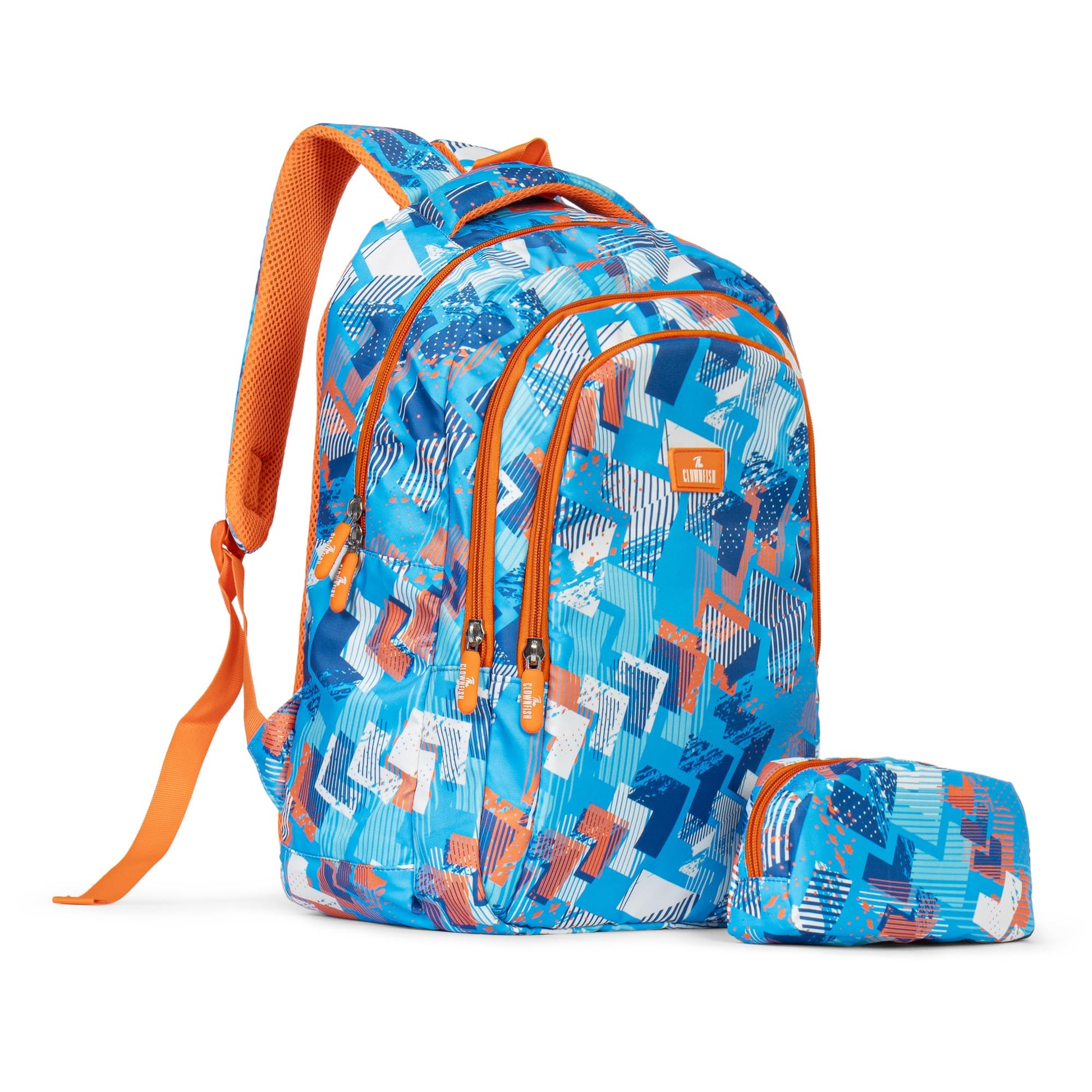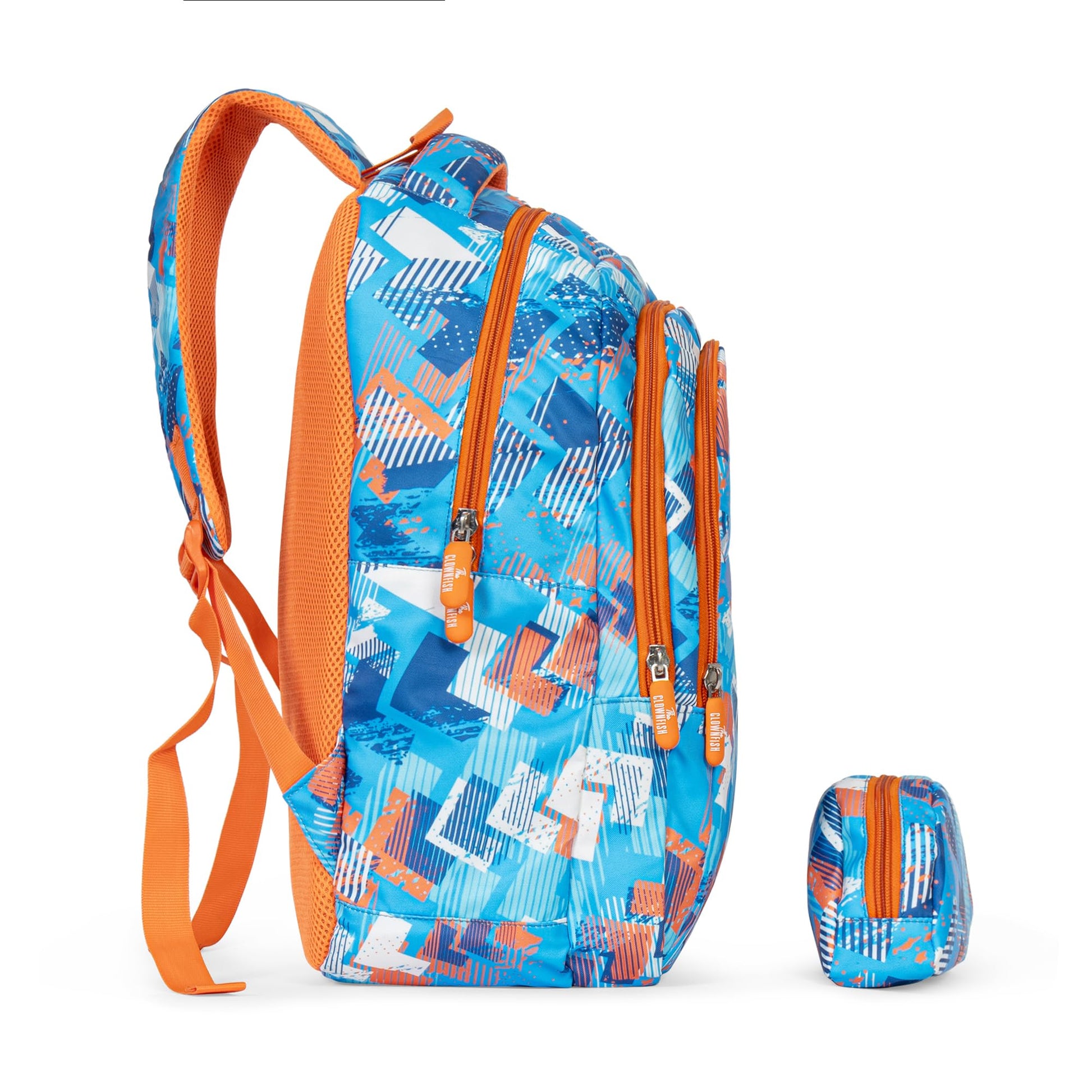 Introducing the Scholastic Series Printed Polyester 30 L School Backpack by Clownfish, designed to meet the needs of children aged 8 to 10 years. This vibrant blue and orange backpack features multiple compartments, making it ideal for young students. The backpack not only holds a substantial 30 liters of essentials but also includes a pencil pouch to keep writing materials organized. Crafted with durable, lightweight polyester, it's built to withstand the wear and tear of daily use. Measuring 30(L) x 23(W) x 43(H) cm for the backpack and 22(L) x 5(W) x 12(H) cm for the pencil pouch, this bag balances functionality with fun.