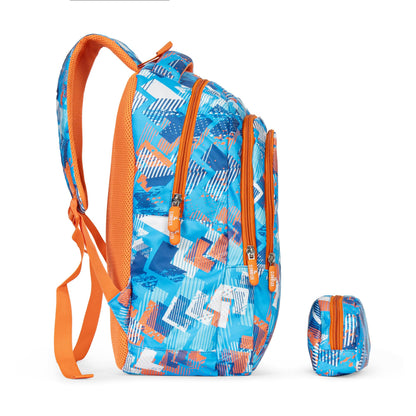 Scholastic 30L Unisex Blue-Orange School Backpack with Pencil Pouch