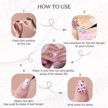 • EASY APPLICATION: Simply clean your nails, peel off the stickers, and apply. Use nail gel for longer-lasting wear.