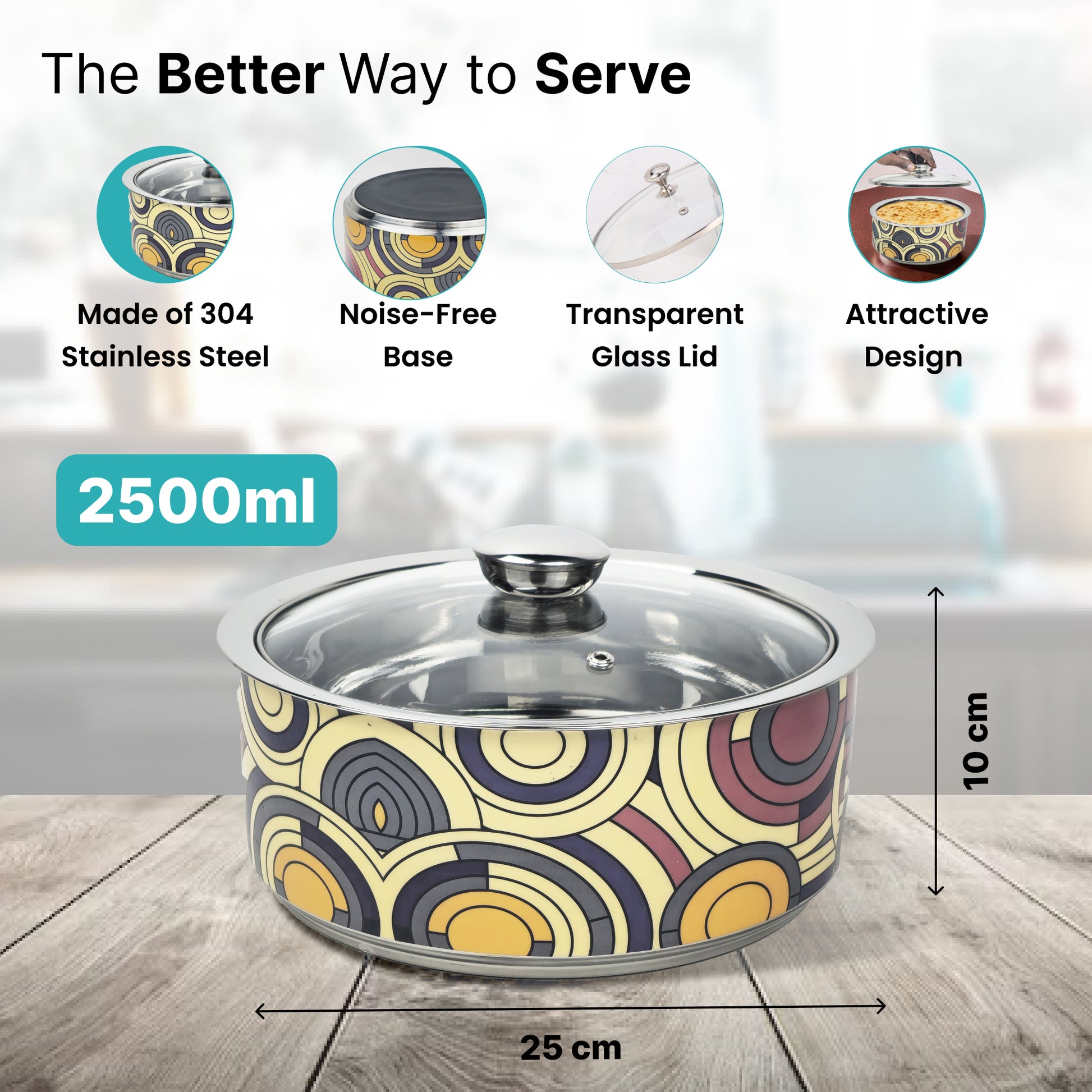 Introducing the Serving Casserole by The Better Home, your ultimate kitchen companion designed to enhance your mealtime. This versatile casserole features a generous 2.5L capacity, made from high-quality 304 stainless steel. Its double-walled, insulated design ensures that your dishes stay warm longer, making it perfect for serving hot chapatis, delicious curries, and refreshing salads at family gatherings or casual dinners at home.