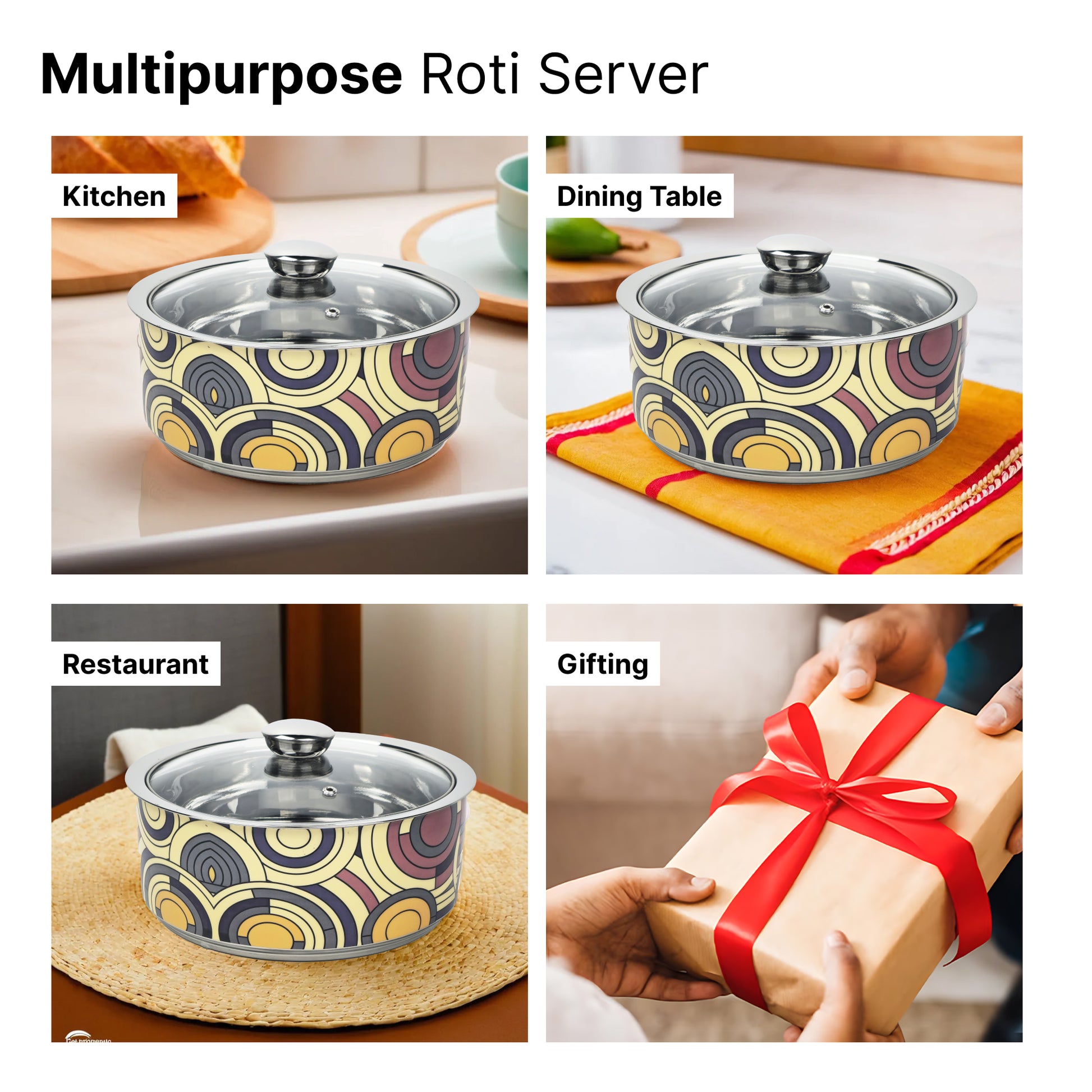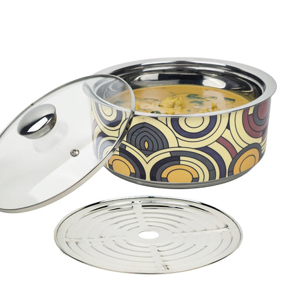 The casserole is equipped with a transparent glass lid, allowing your culinary creations to be beautifully showcased while keeping them secure and ready to serve. Customers rave about its sturdy construction and stylish antique geometric pattern, which adds an elegant touch to your dining table. Whether you’re storing pasta, serving cold desserts like custard, or using it as a roti box, this casserole shines with versatility.