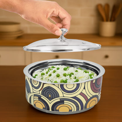 Serving Casserole 2.5L: Insulated Hot Box for Curry & Rice | Round | Geometric Pattern
