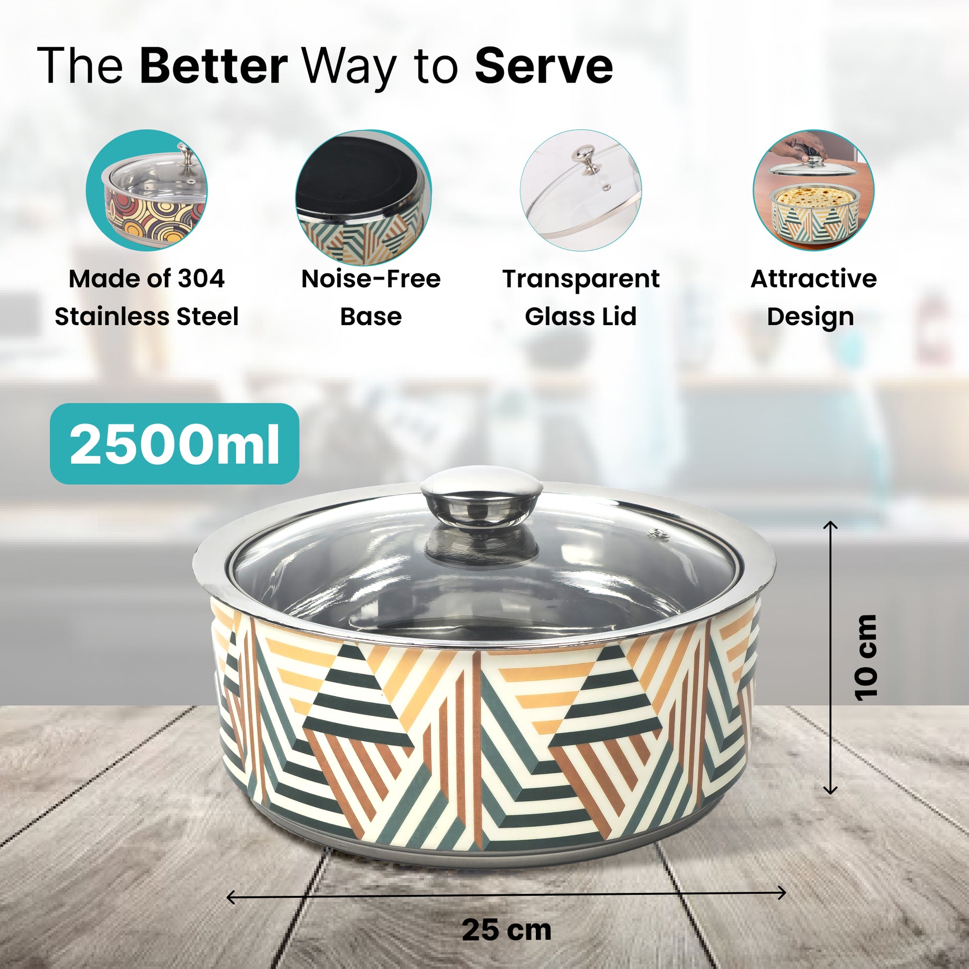 304 Stainless Steel Insulated Casserole (1.5L) | Double Wall Insulation, Heat Retaining Body & Easy Lock Lid Mechanism |Hot Roti Box | Hot Case | Wobble Free Base, Glossy Durable