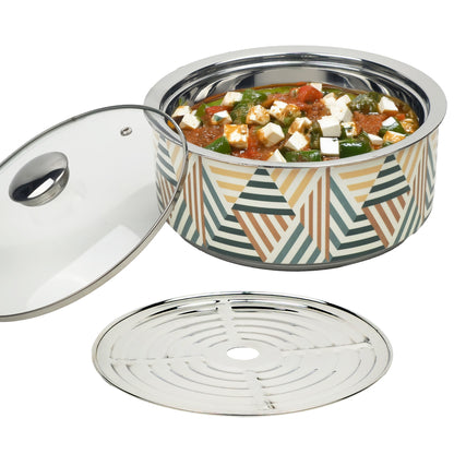 UMAI Double Walled Insulated Serving Casserole (1.5L) | Stainless Steel Hotpot with Transparent Glass Lid & Coaster | Hot Pot For Roti Box | Curry Bowls For Serving | House Warming Gifts For New Home