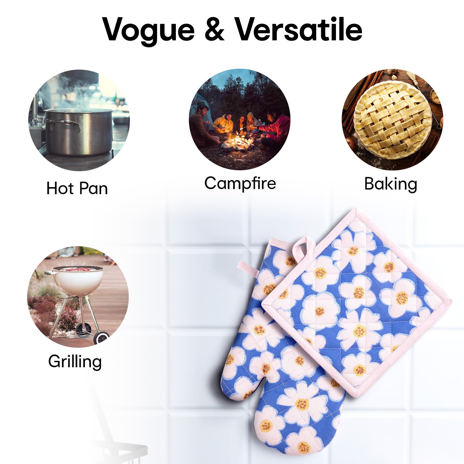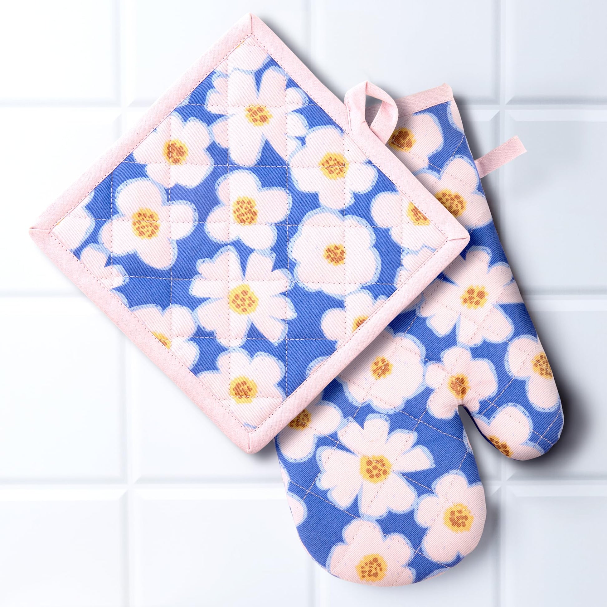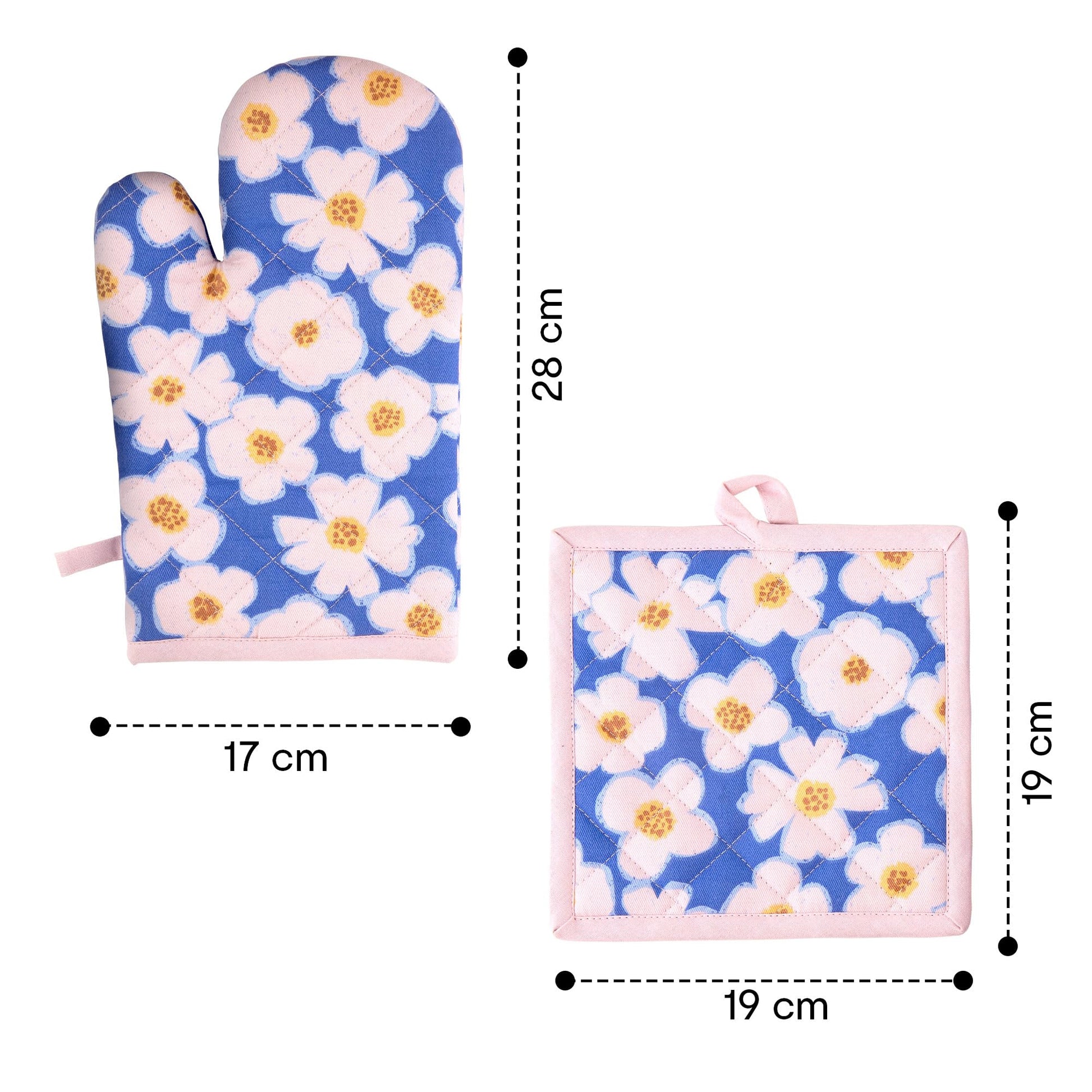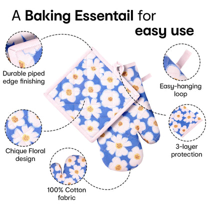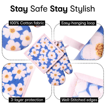 Oven Gloves and Pot Holder | 100% Cotton Floral Print Oven Gloves| Set of 2 | Utensil Holder Gloves | Cooking Gloves | Heat Resistant Gloves | Pot Holder: 7.4 Inches (L) Oven Glove: 11 Inches