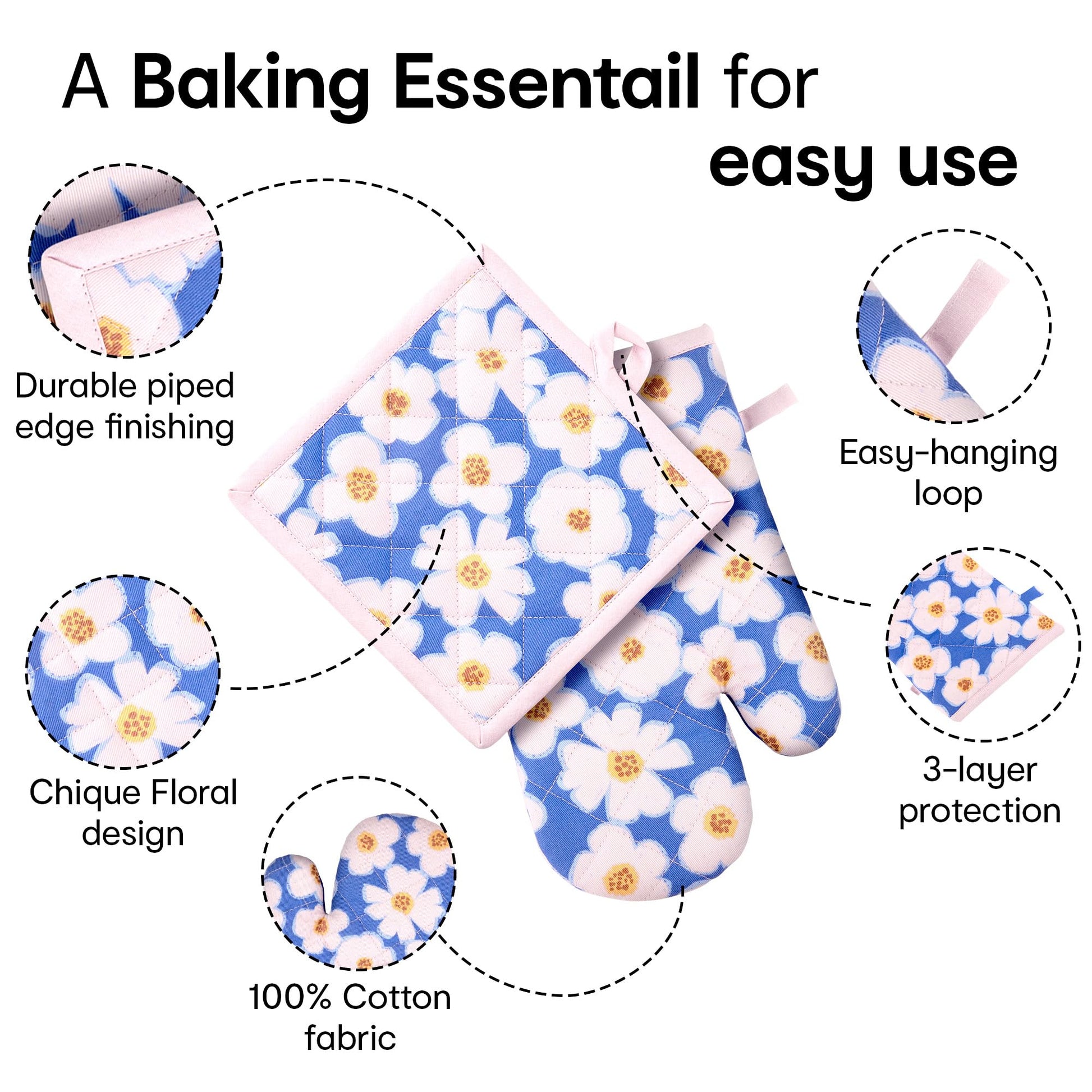 Anko Oven Gloves and Pot Holder | 100% Cotton Floral Print Oven Gloves| Set of 2 | Utensil Holder Gloves | Cooking Gloves | Heat Resistant Gloves | Pot Holder: 7.4 Inches (L) Oven Glove: 11 Inches