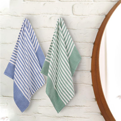 Introducing the Mush Bamboo Turkish Hand Towels Set of 2, your perfect companion for an ultra-soft and absorbent towel experience. Crafted from 100% bamboo, these towels measure 40 x 60 cms and are designed to offer quick drying capabilities that make them ideal for the gym, travel, sports, and yoga enthusiasts. With their elegant Navy and Dark Green striped pattern, they not only provide functionality but also style to your daily routine.