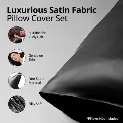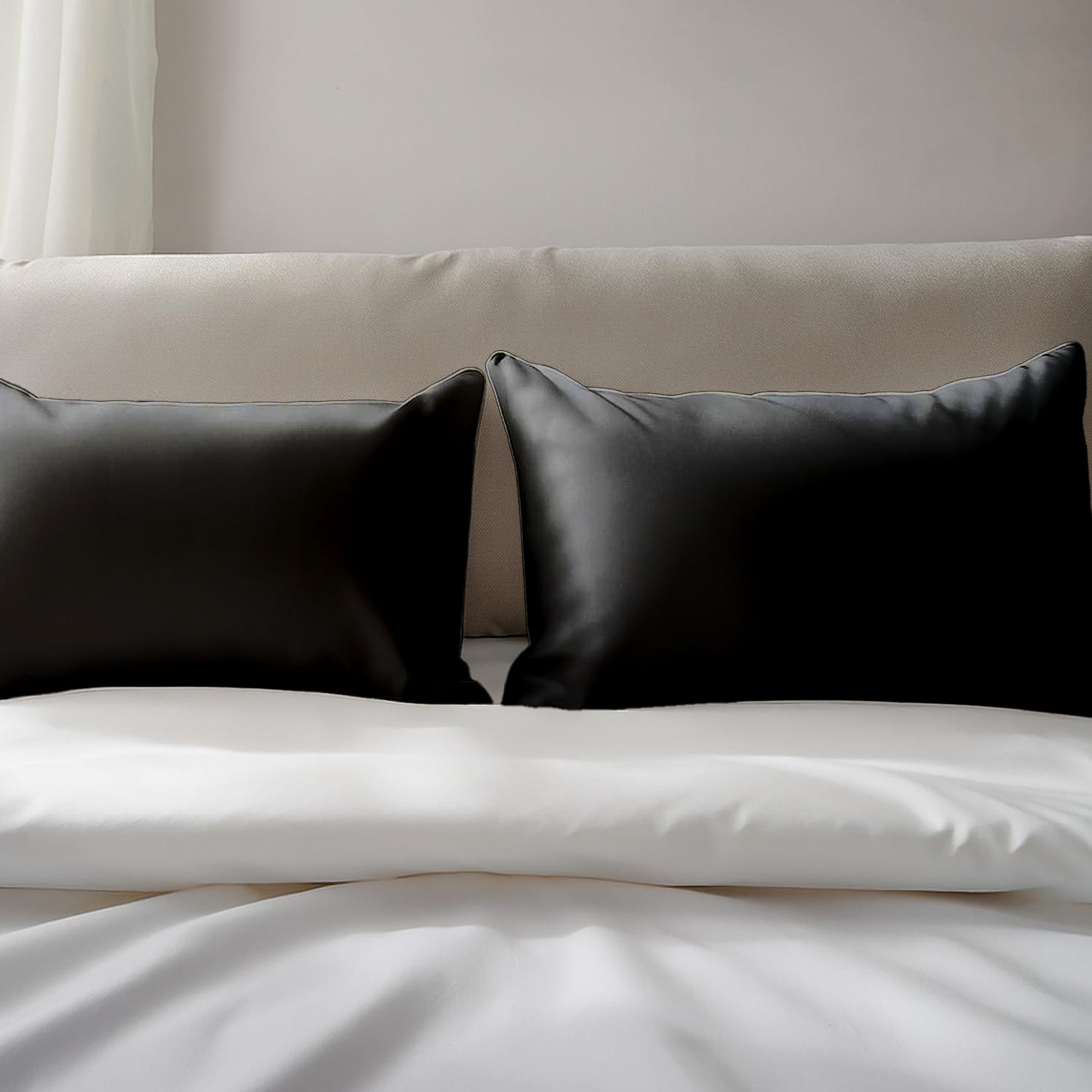 Set of 2: Satin Pillow Cases for Sleeping Takiya | Size Standard | Black