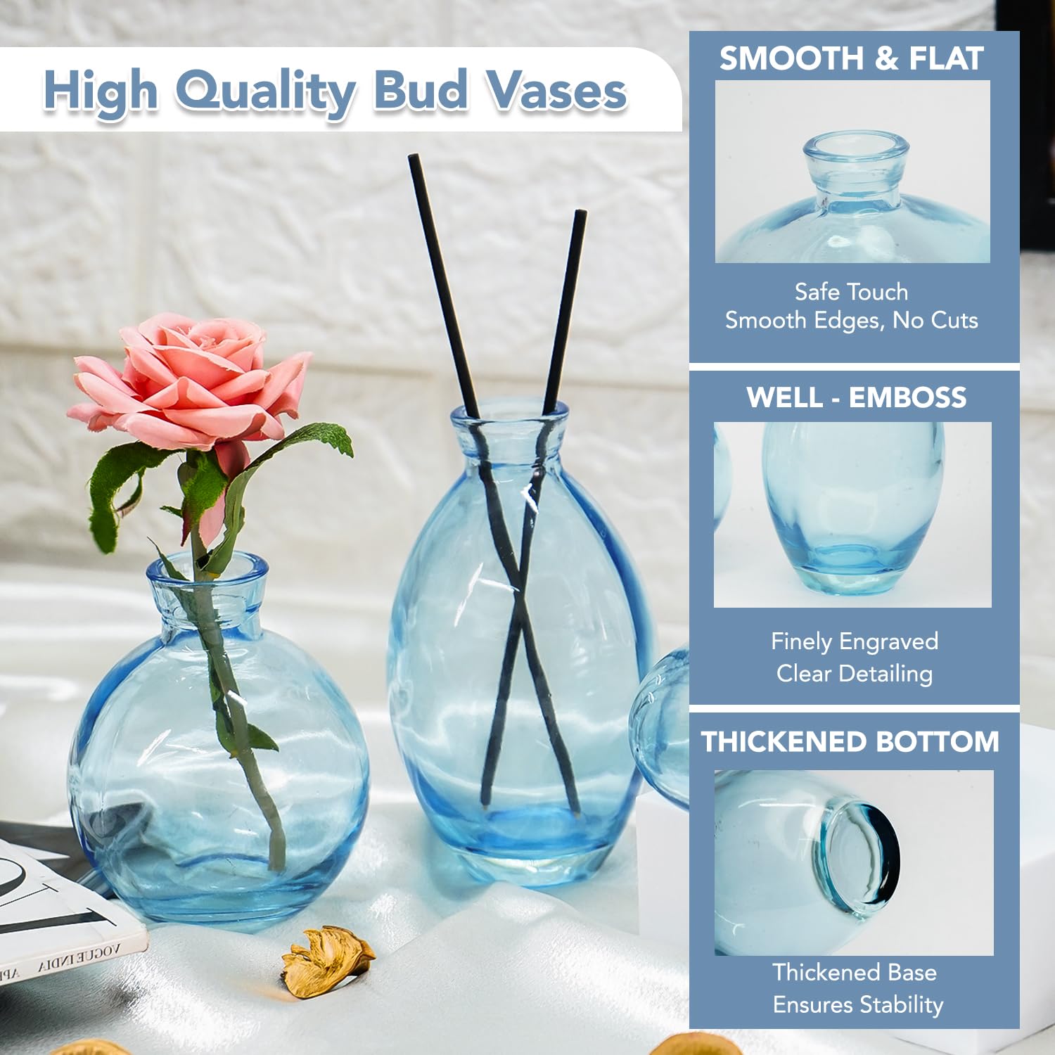 These decorative vases are ideal for anyone looking to enhance their living space, perfect for home decor enthusiasts, and those on the lookout for unique gift options. Whether you're decorating your home or looking for a charming gift, the Ekhasa Crystal Blue Glass Bud Vases are a delightful choice!