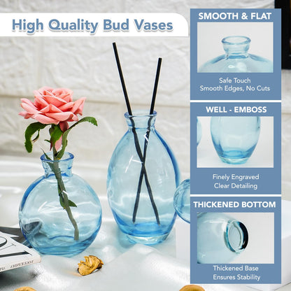 Crystal Blue Glass Bud Vases Set of 3: Mini Decorative Items | Transparent | Tabletop