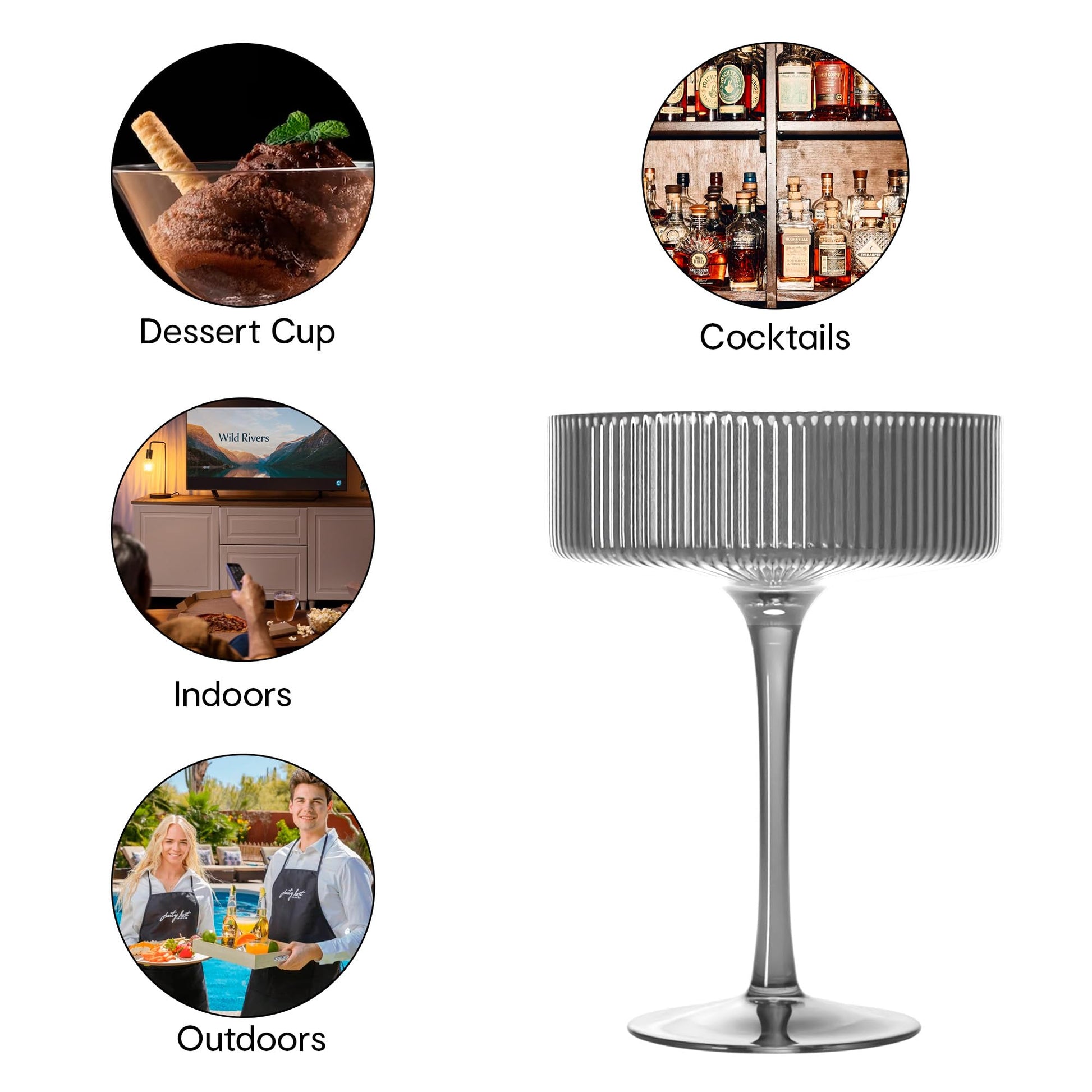 Australia 200ml Ribbed Champagne Coupe | Set of 4 | Cocktail Glass Set | Bar Accessories for Home, Restaurant & Parties | Suitable for All Occassions | Grey