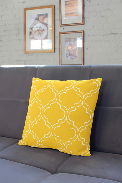 Set of 5: Yellow Trellis Printed Cushion Covers | 30x30 cm | Polyester | Casual