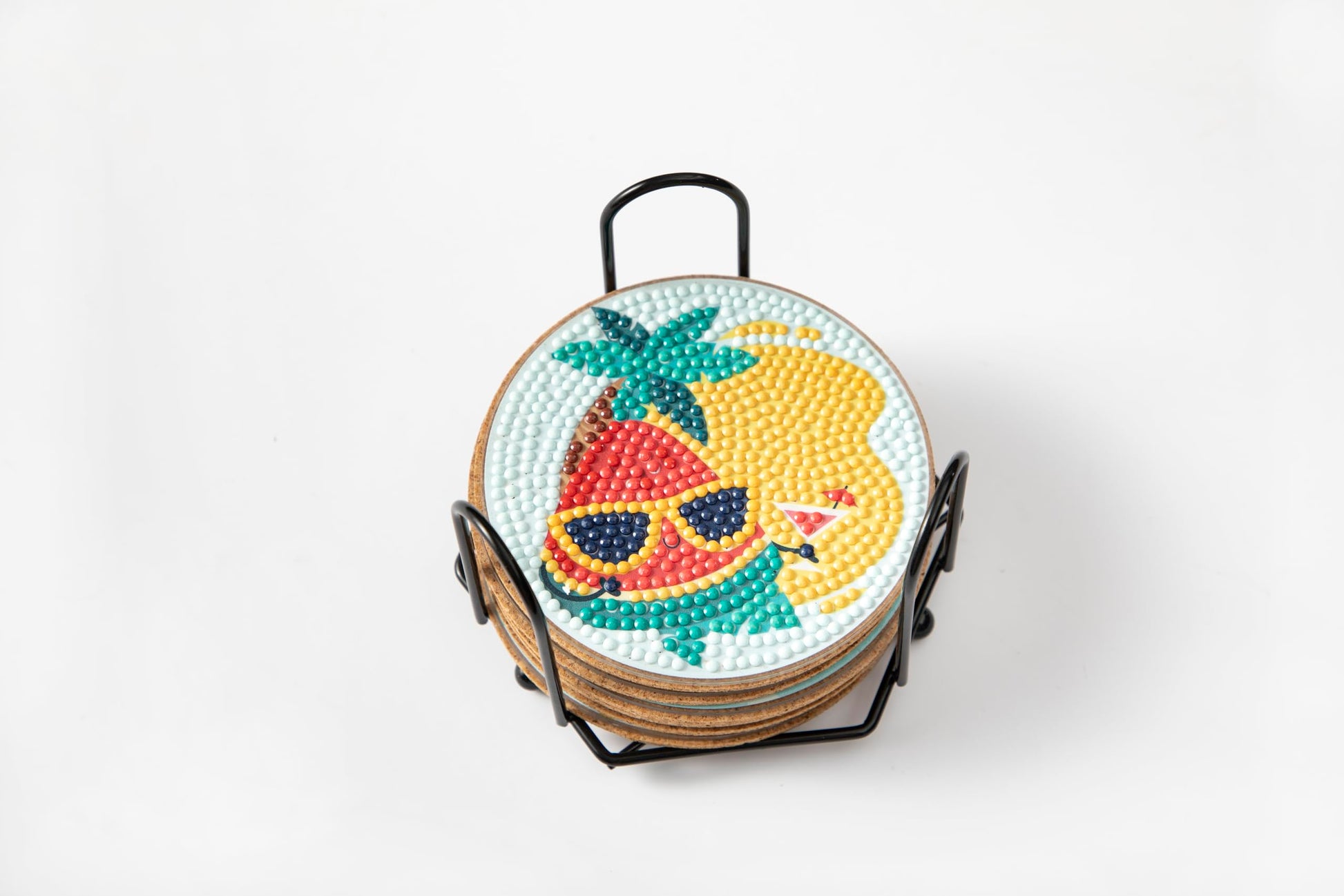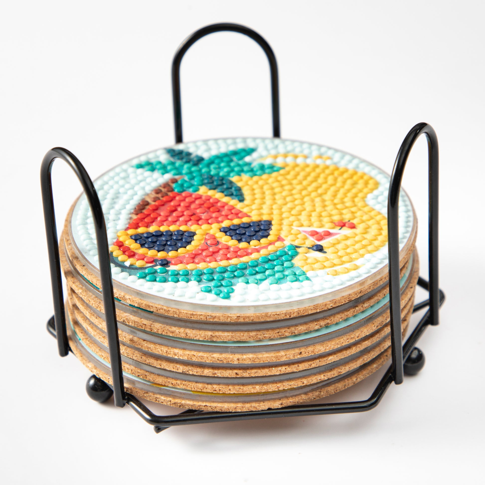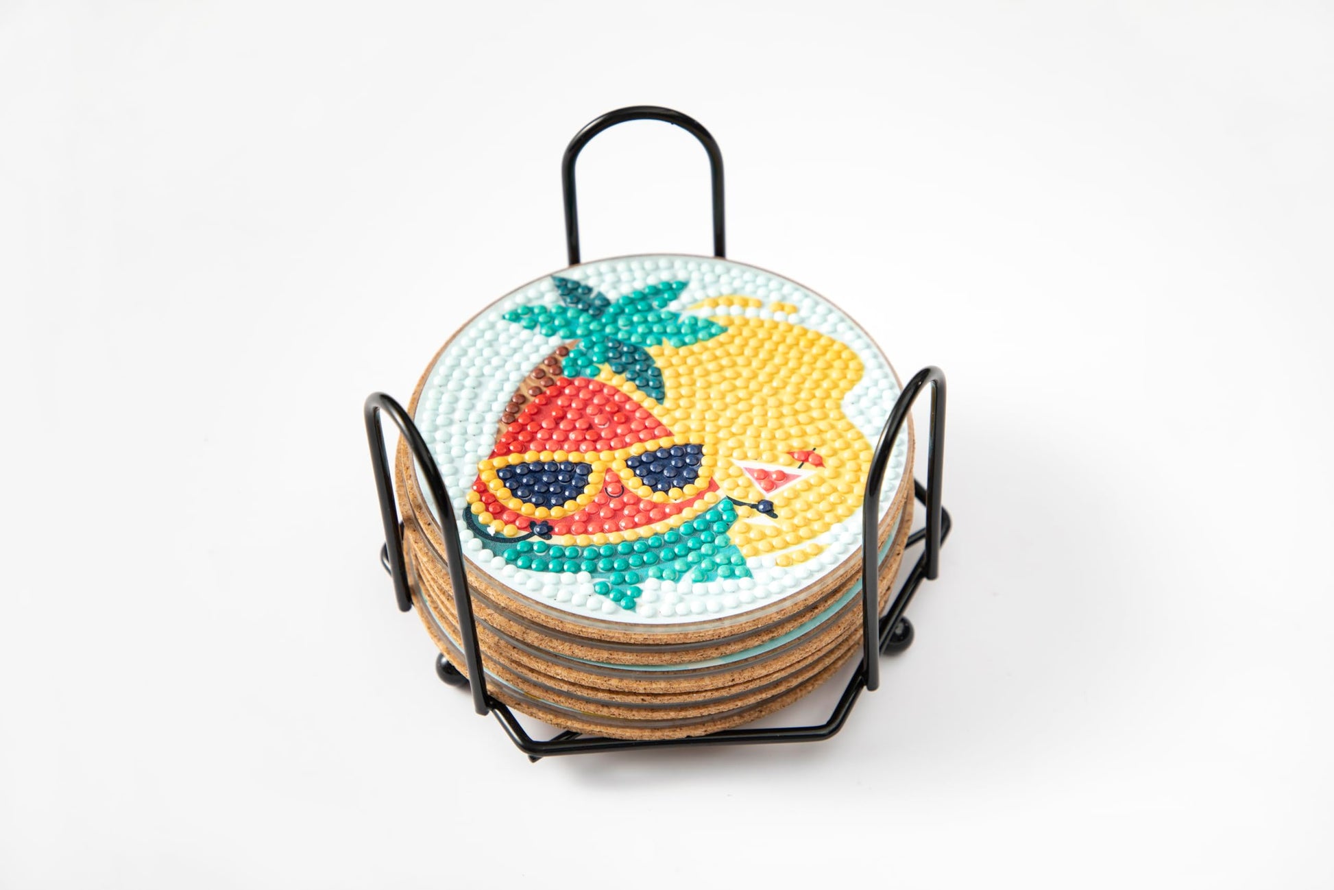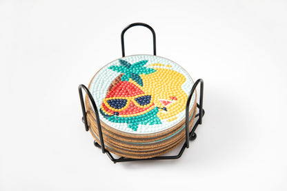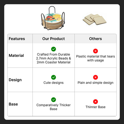 Ceramic Coasters Set of 6 (Dia - 10cm, 8mm Thick) | Dining Table Decor Accessories | Cups/Coffee Mugs/Glasses Coaster Set | Glass Cover Lid | Kitty Party Return Gifts for Women (Multicolor)