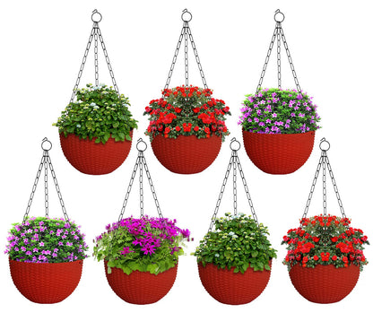 Set of 7: Plastic Hanging Flower Pots | 20x20x59 cm | Red
