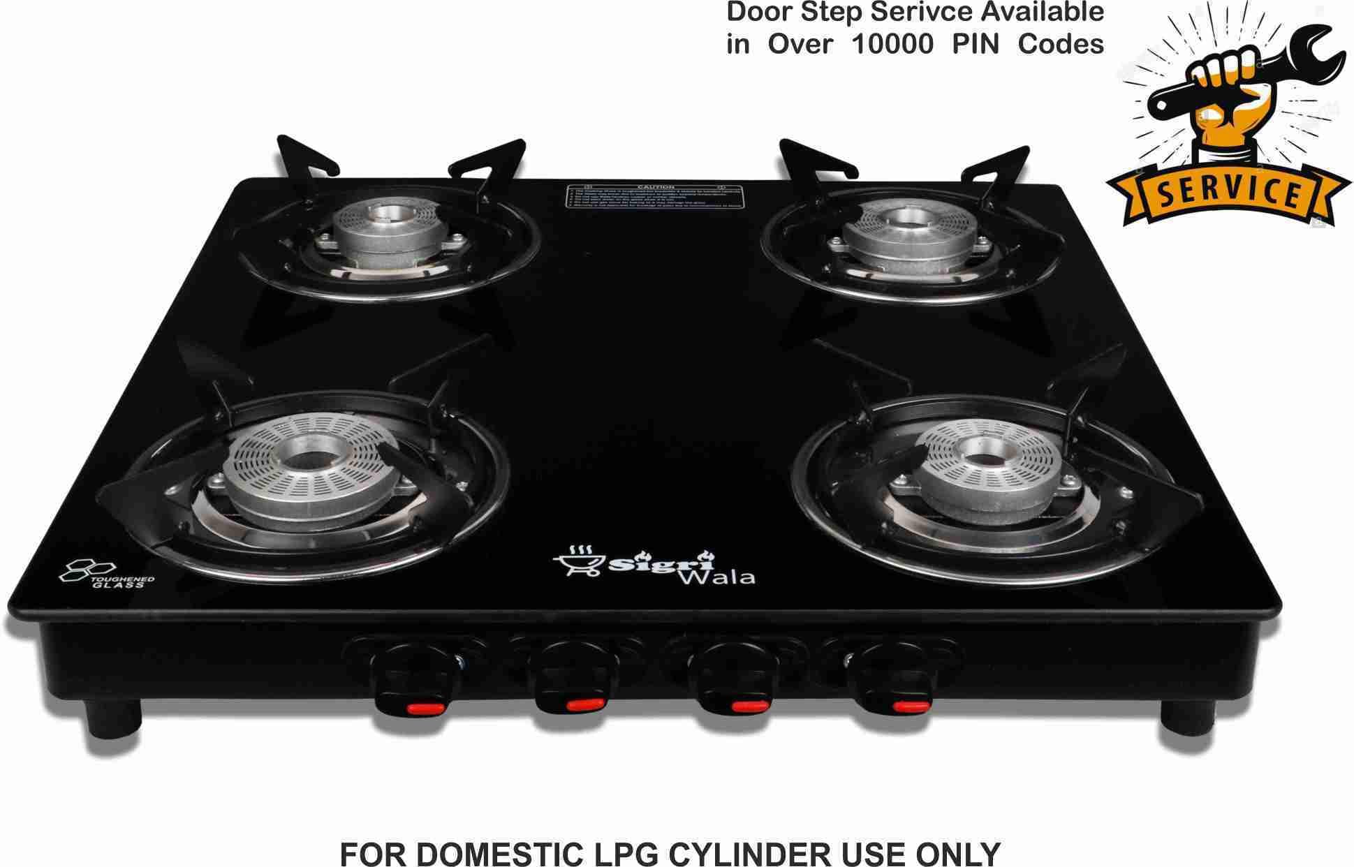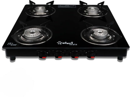 Sigri-wala 4 Burner Tornado Delux ISI Certified LPG Only Glass Manual Gas Stove (4 Burners)