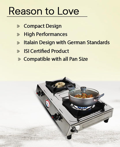 Sigri-wala Stainless Steel Manual Gas Stove (2 Burners)