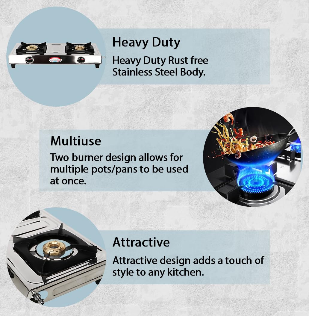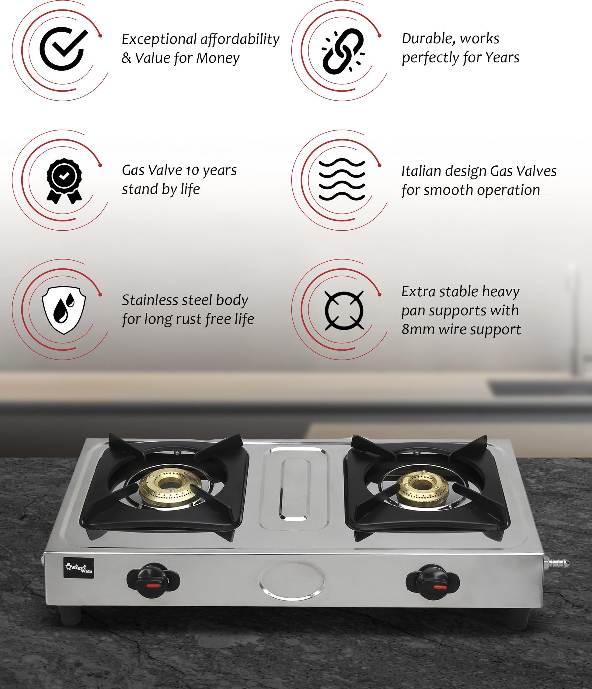 Discover the Sigri-wala Stainless Steel Manual Gas Stove (2 Burners)